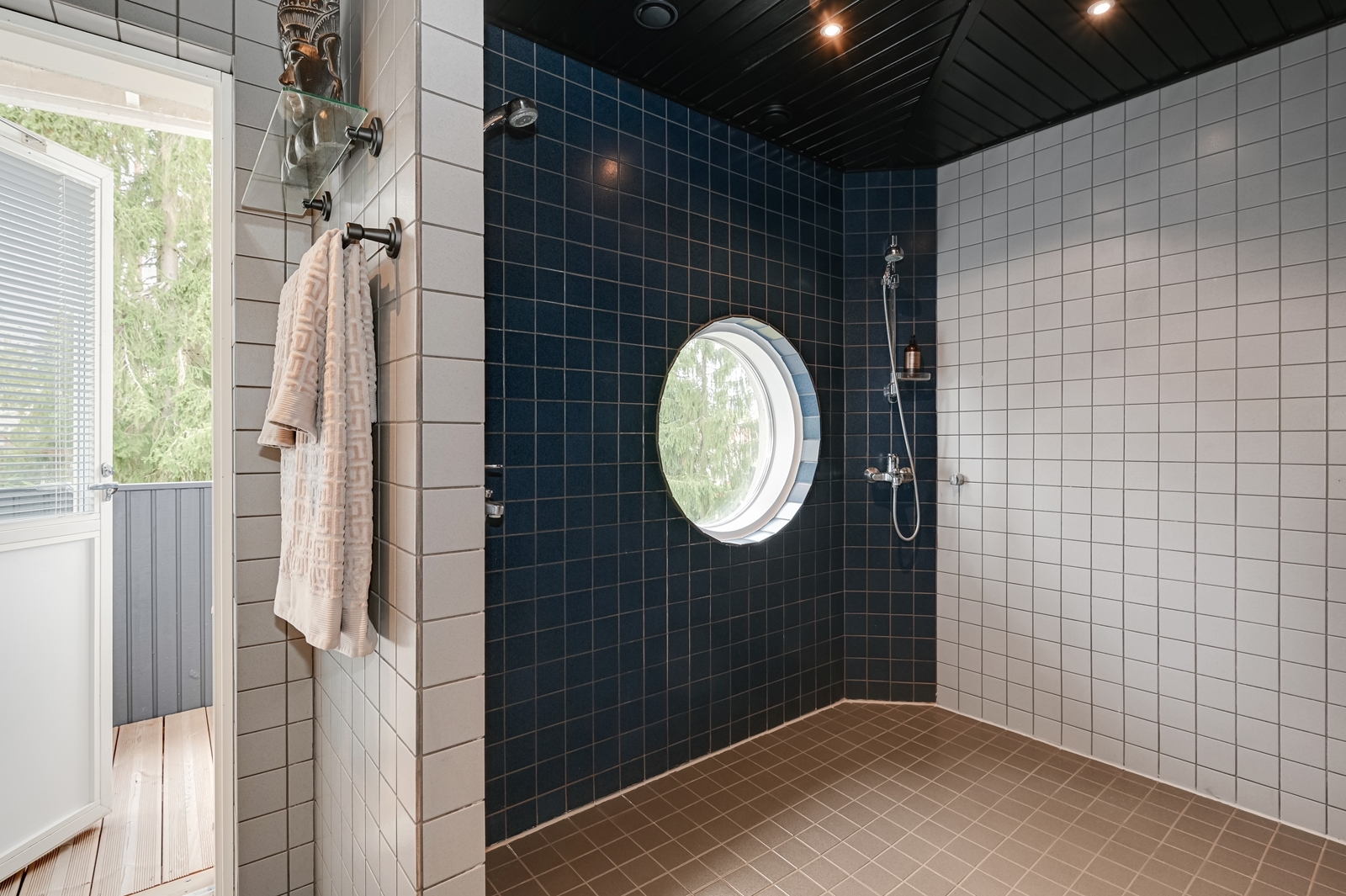 | Saunan kuvaus | Seinät (puu), lattiat (laatta), Sähkökiuas |