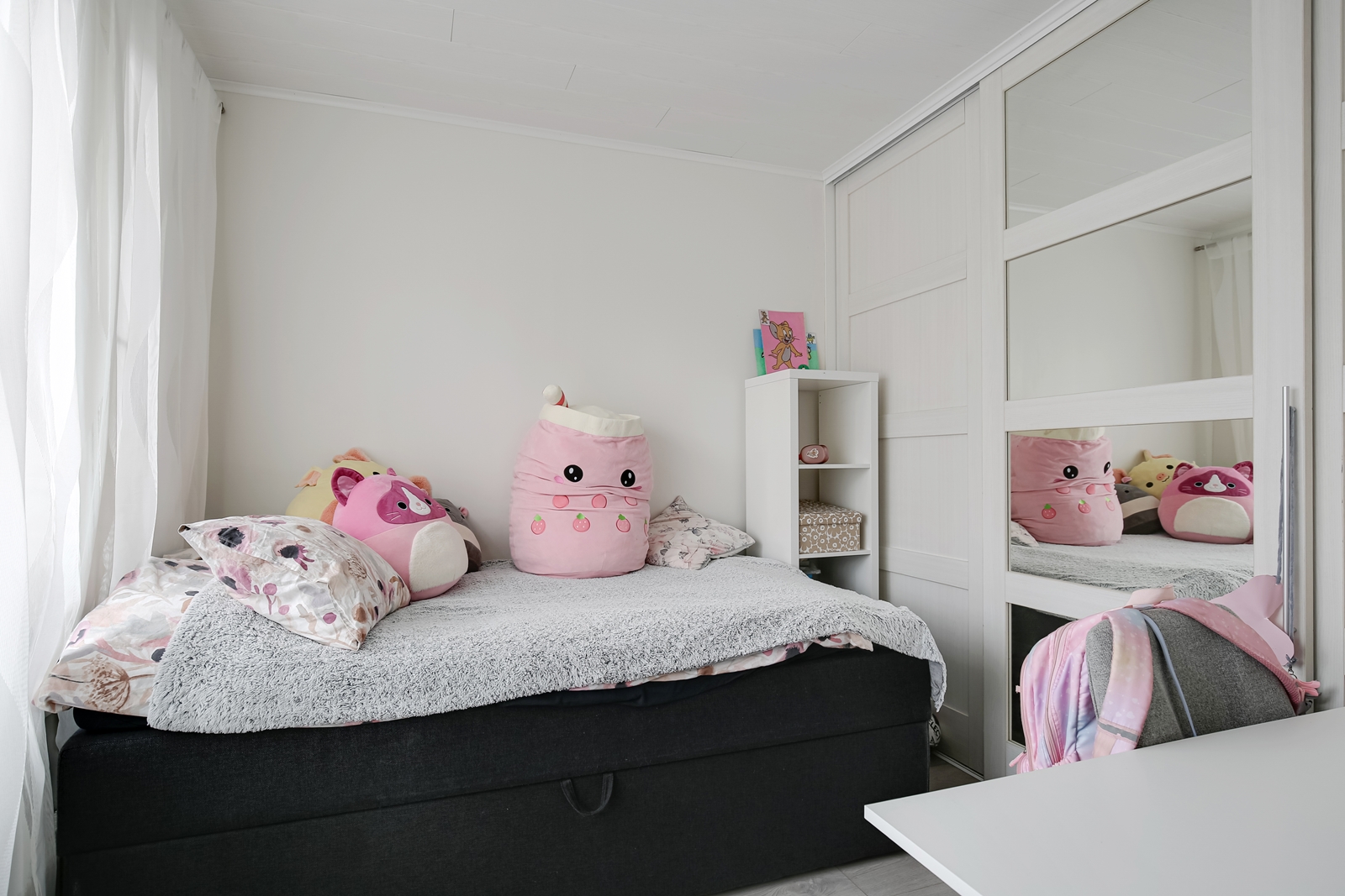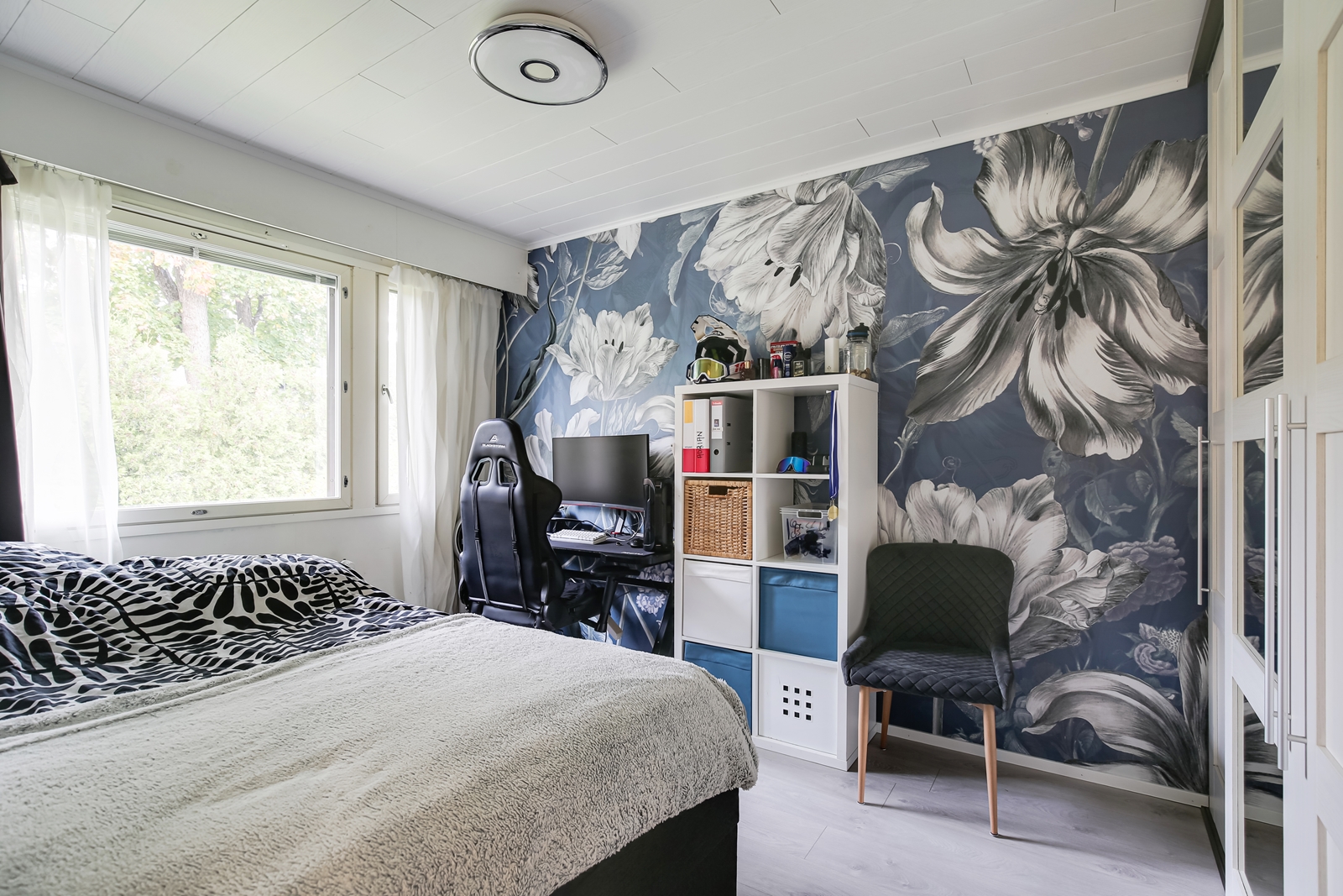 | Makuuhuoneen kuvaus | Lukumäärä: 2, seinät (maali ja tapetti), lattiat (laminaatti) |