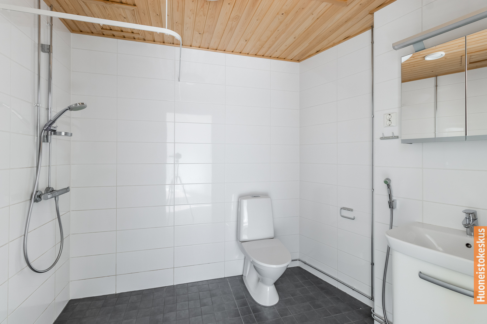 | Kylpyhuoneen kuvaus | WC-istuin, pesukoneliitäntä ja suihku, lattiat (laatta) |