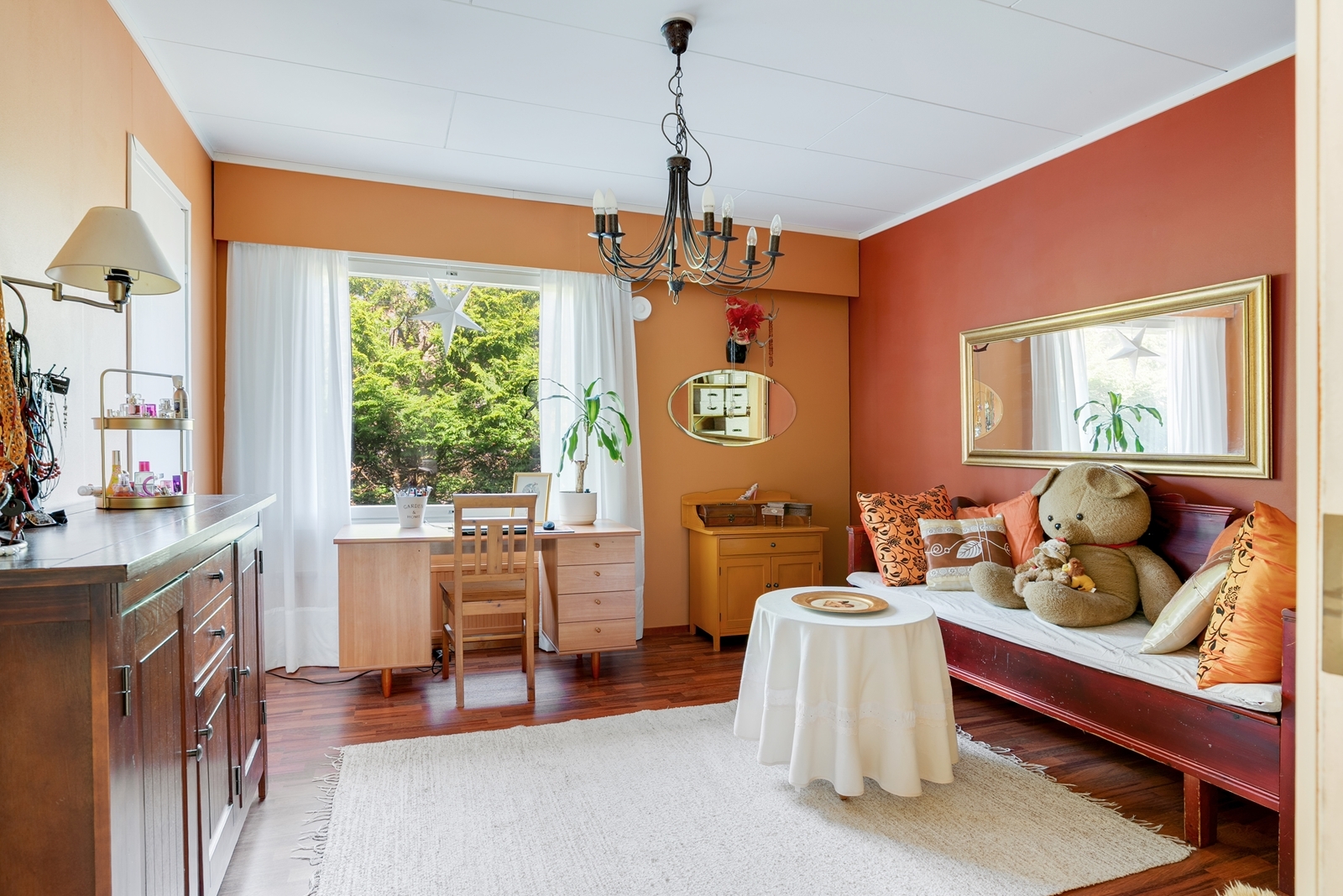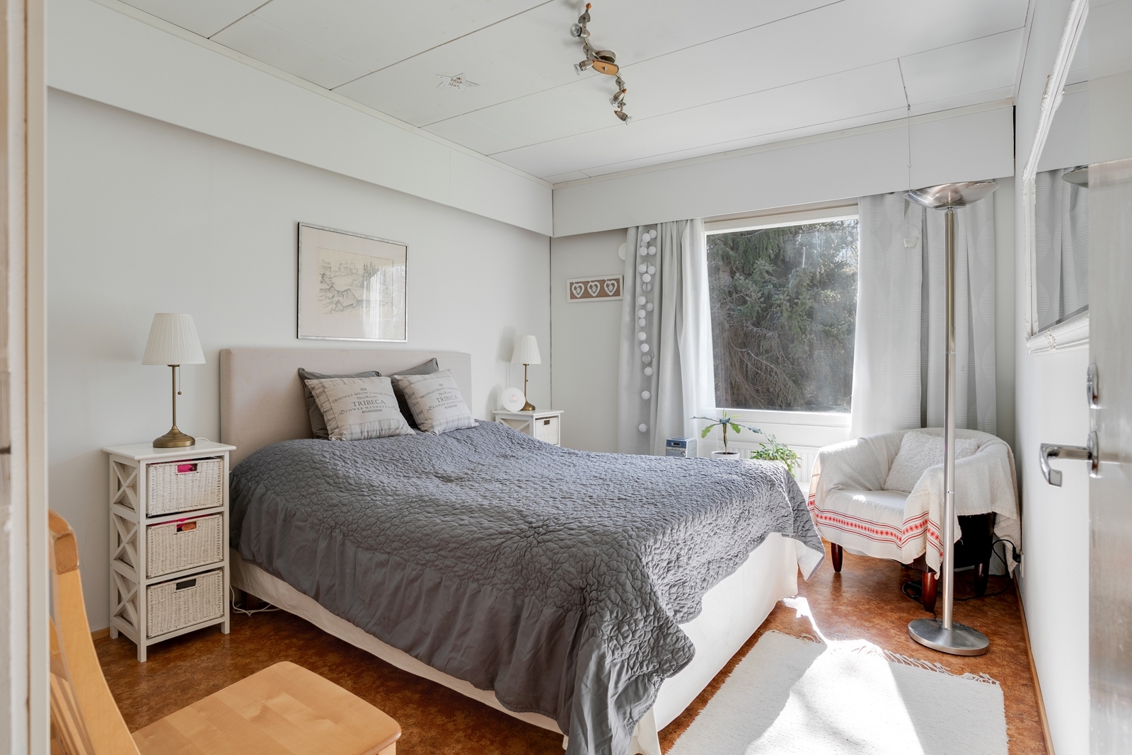 | Makuuhuoneen kuvaus | Lukumäärä: 3, seinät (maali), lattiat (muovimatto ja laminaatti) |