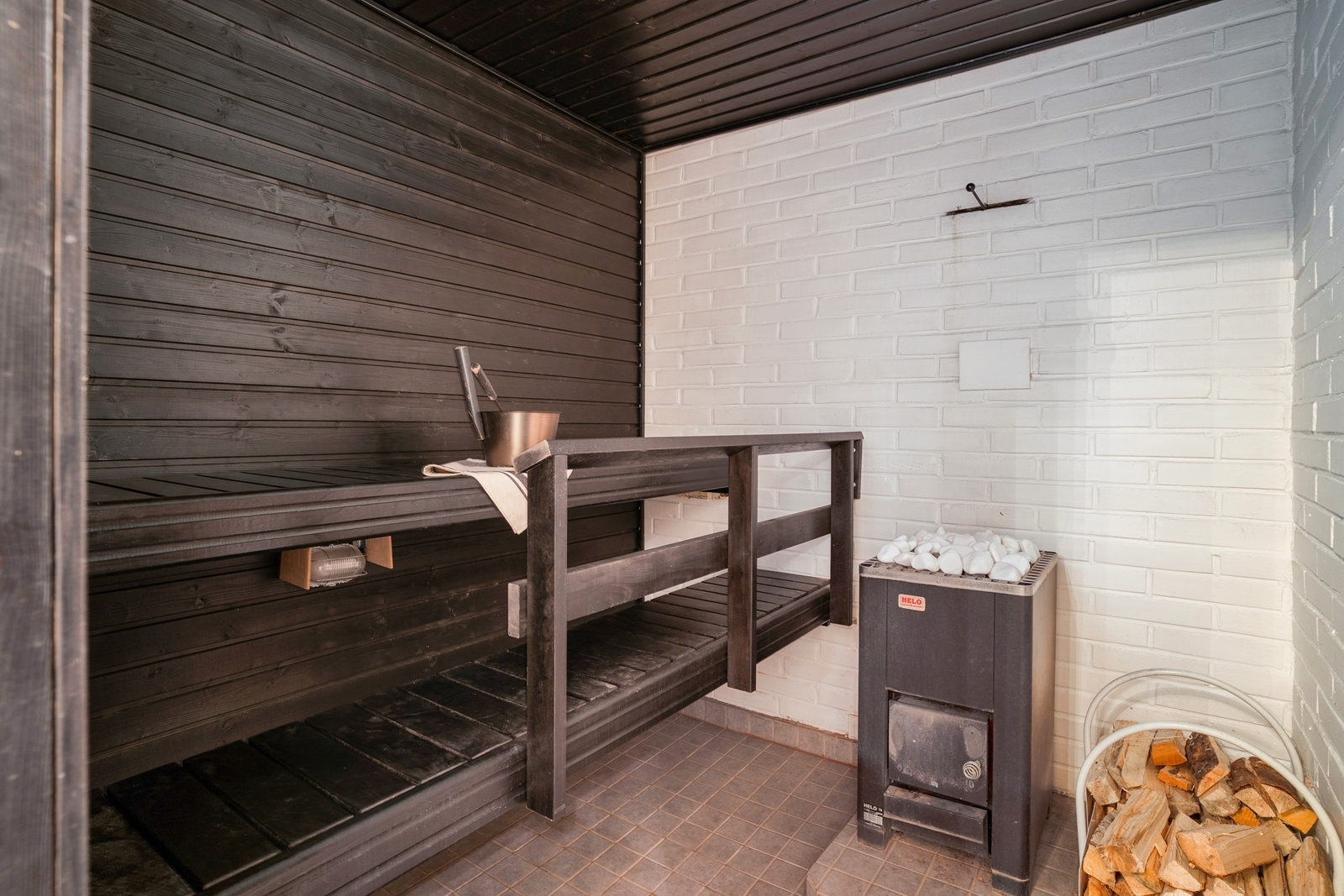 | Saunan kuvaus | Lattiat (laatta), Puukiuas, Seinä puu ja tiili |