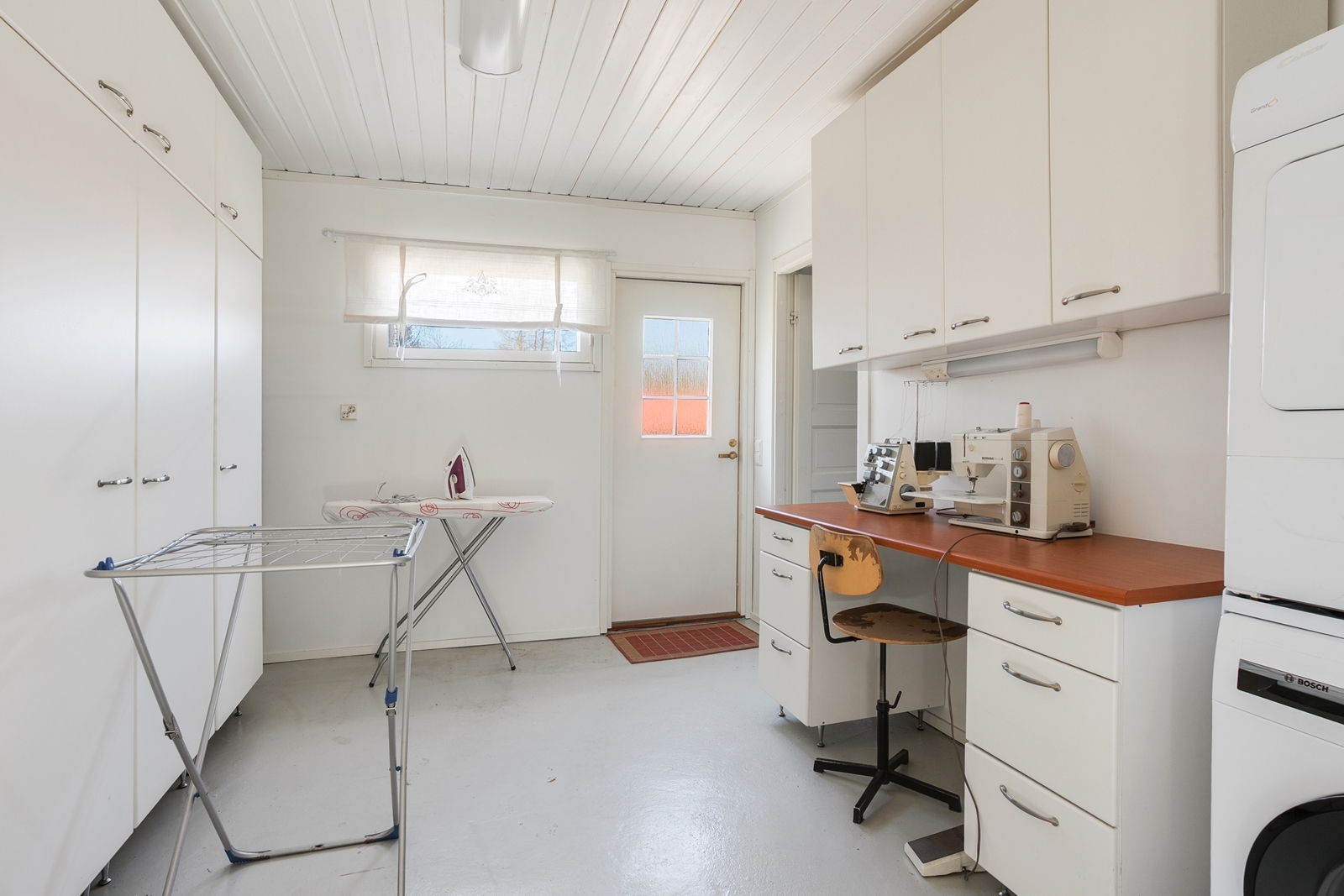 | Kodinhoitohuoneen kuvaus | Lattialämmitys ja pesukoneliitäntä, lattiat (betoni), seinät (maali) |