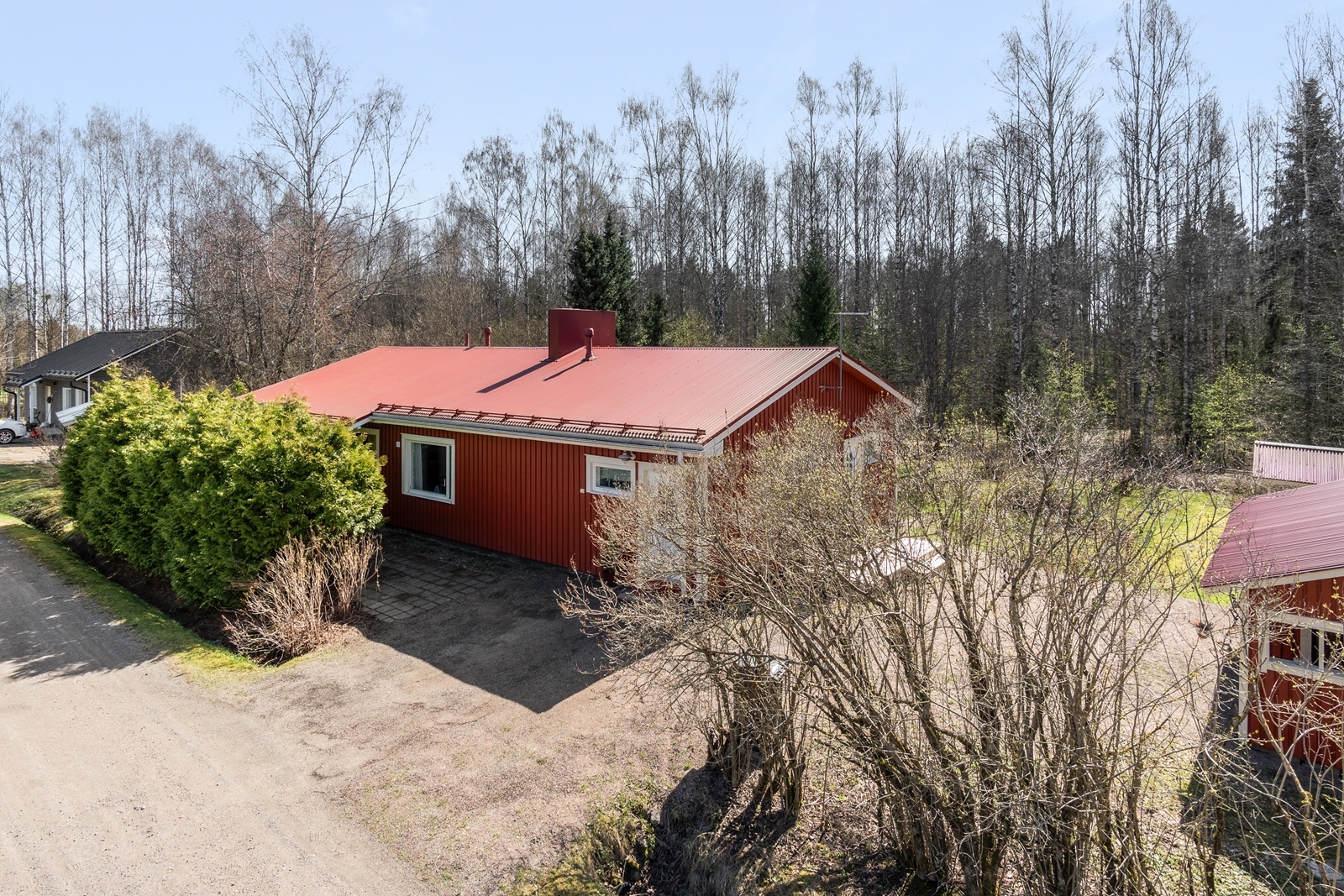 Punainen mahdollisuuksien talo päättyvän kadun varrella, rauhallinen ja luonnonläheinen ympäristö, ei läpiajoliikennettä. Laaja viheralueeseen rajoittuva tontti. Rengon keskustan palvelut ovat noin puolen kilometrin päässä. Päiväkoti, alakoulu, kuntosali, lenkkipolut ja kuntoportaat, kauppa, apteekki, bensa-asema, kirjasto, keskiaikainen kivikirkko ja pienpalvelut sijaitsevat kivenheiton päässä.