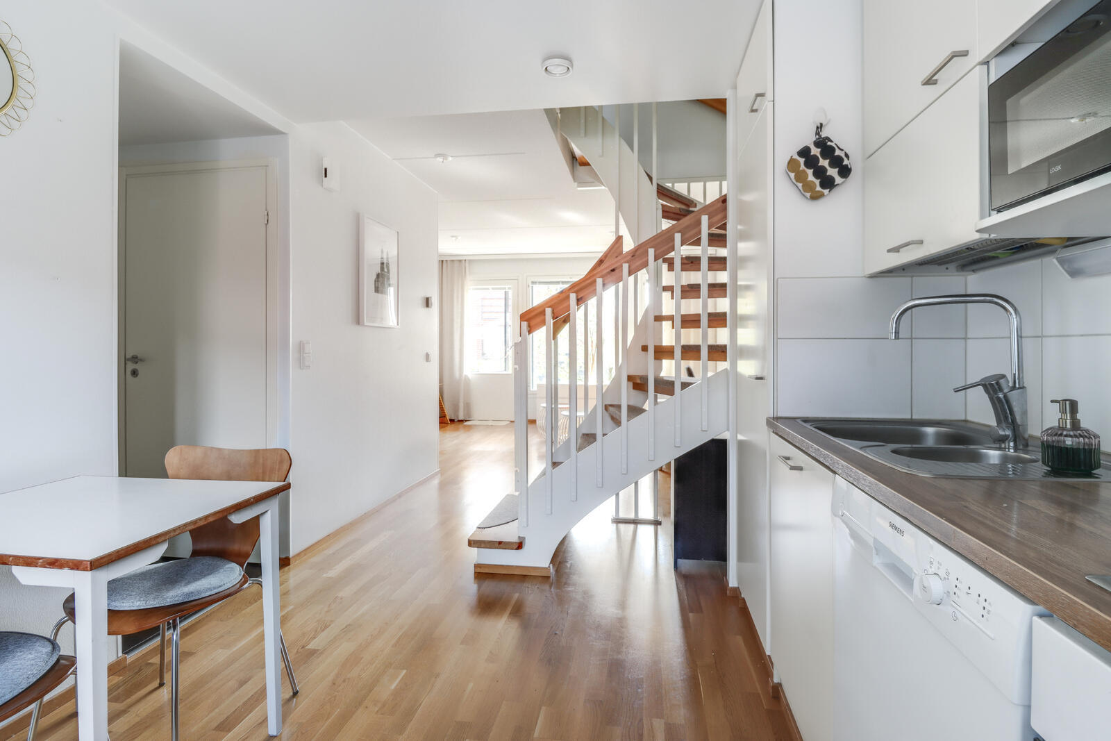 Hyväkuntoinen v. 2013 valmistunut rivitalon lasitetulla parvekkeella sekä pihalla varustettu huoneisto. Taloyhtiössä on kaukolämpö ja huoneistokohtainen LTO-ilmanvaihto. Huoneistolle kuuluu autokatospaikka sekä tilava kylmä varasto. Huoneisto on vuokrattu. ET luokka C 2013.