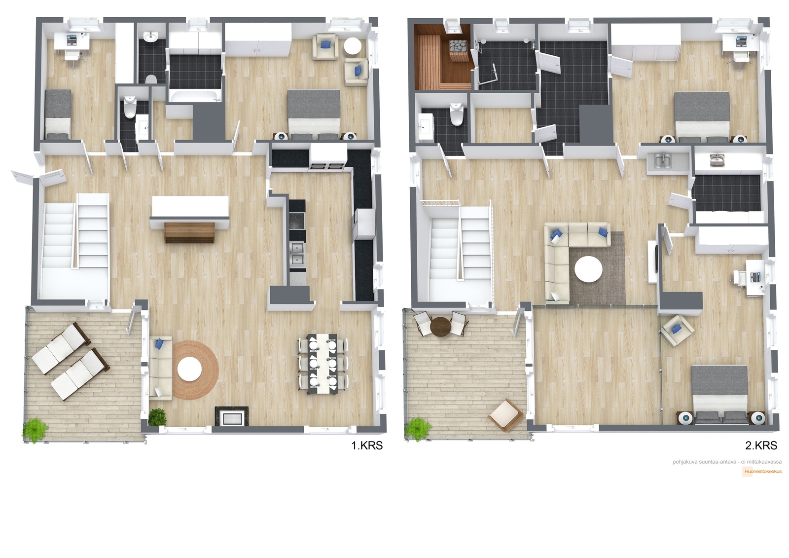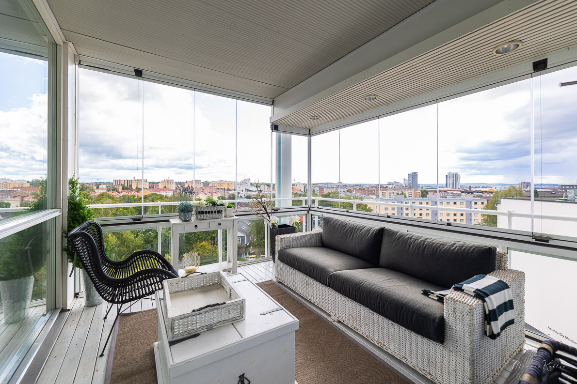 Kaksi upeaa terassiparveketta luovat loistavat puitteet niin rentoutumiseen kuin kesäiltojen illanviettoihin. Alempi parveke on myös lasitettu tarjoten mukavat oltavat pitkälle syksyyn.