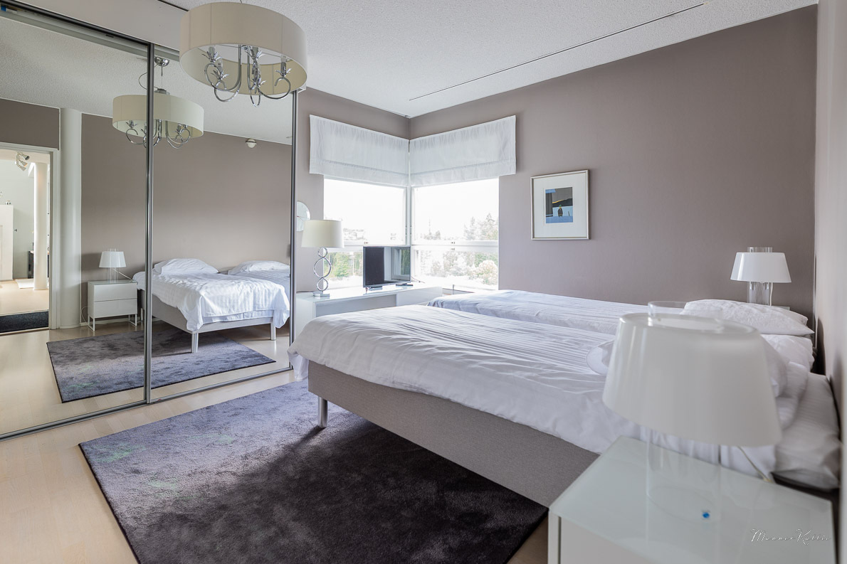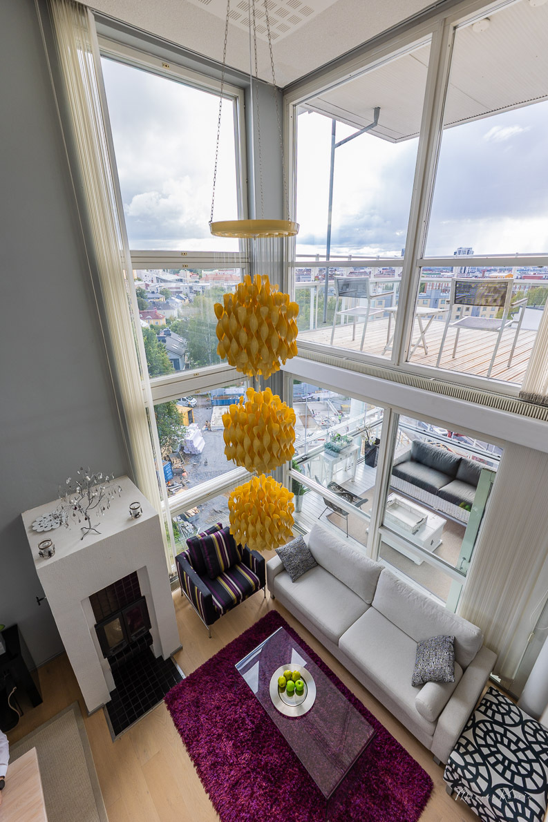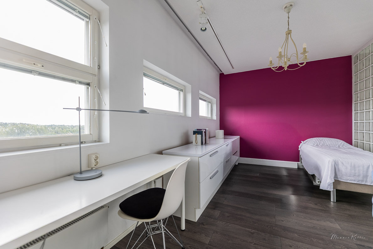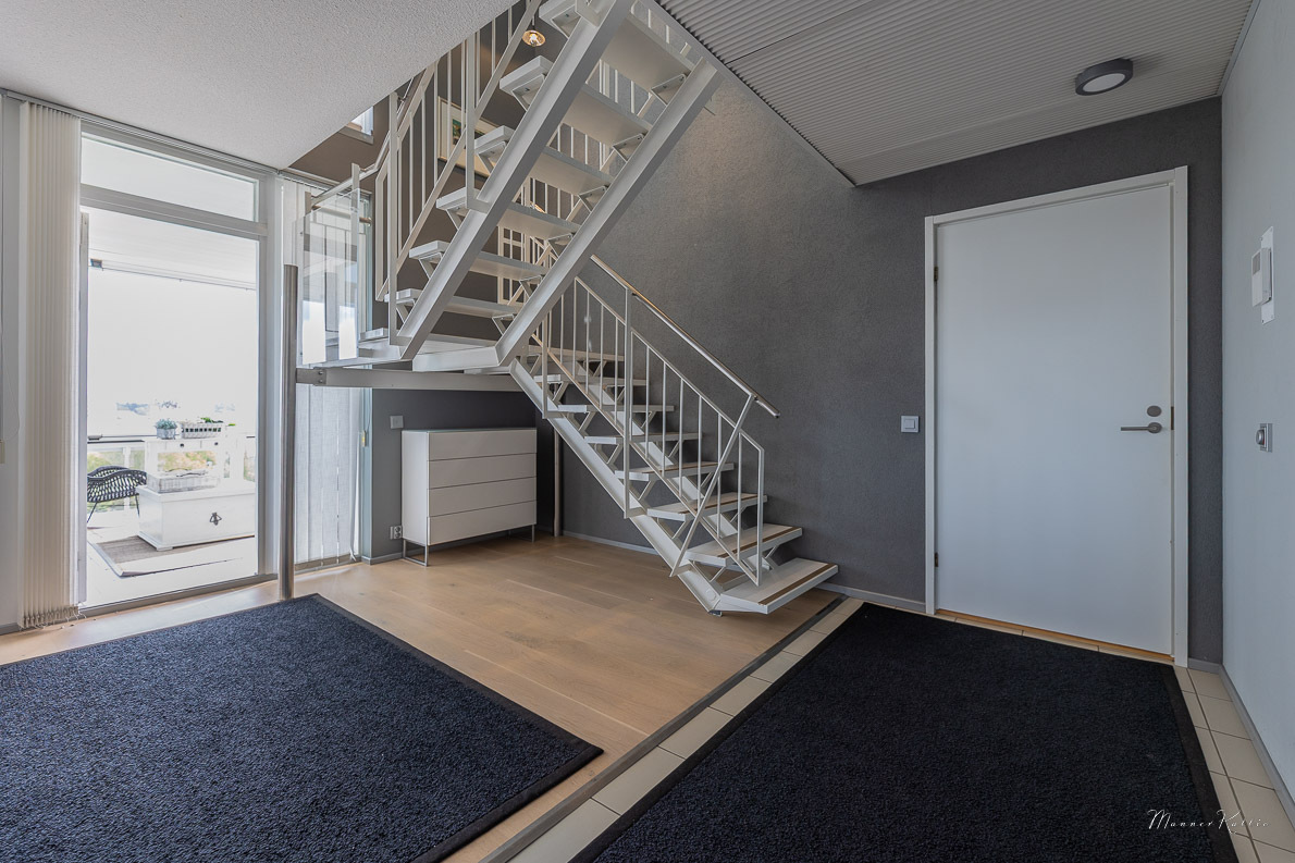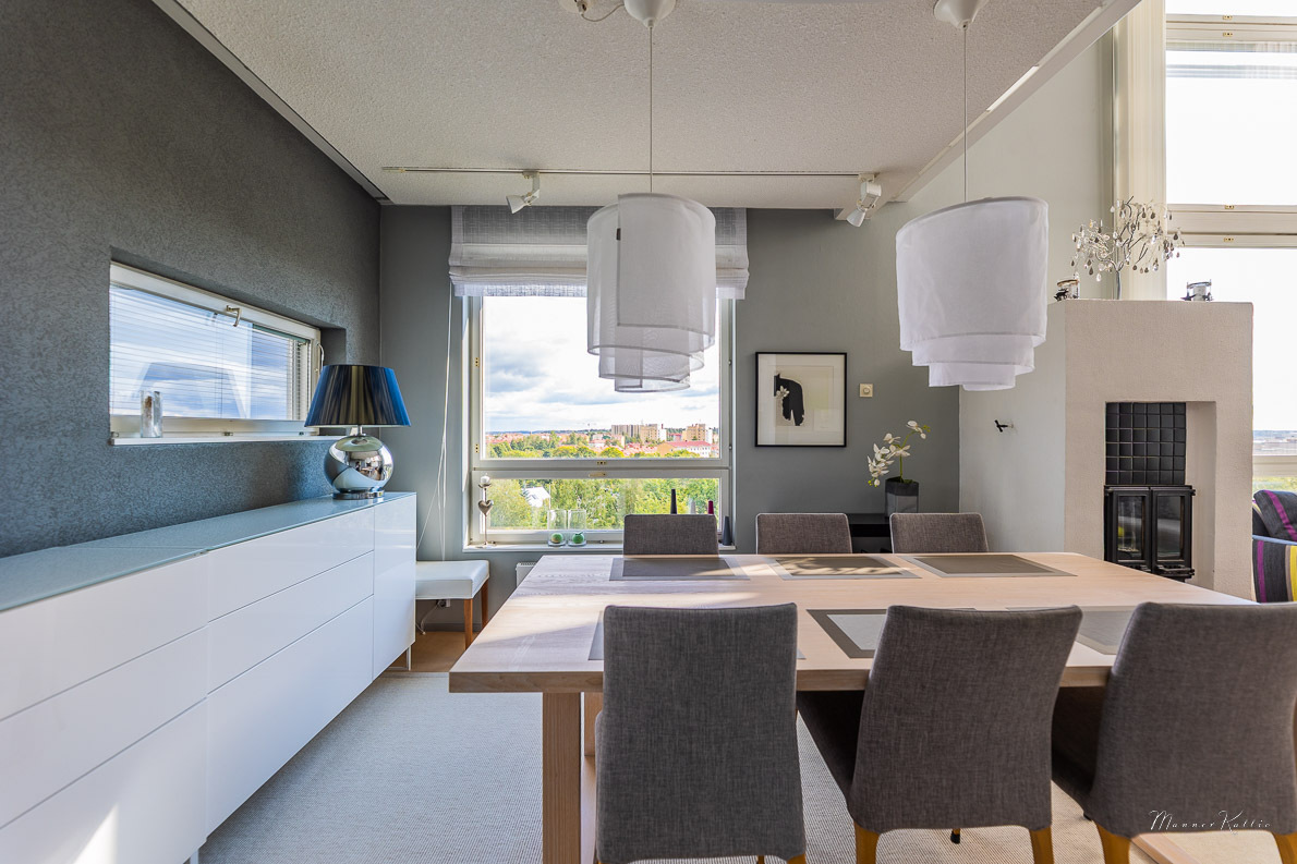 Tämä laadukkaasti rakennettu ja erinomaisessa kunnossa pidetty koti tarjoaa avaruutta ja asumismukavuutta vaativampaankin makuun. Kahden kerroksen korkuiset ikkunat olohuoneessa ja yläkerran aulatilassa tarjoavat valoa ja huikeat näkymät Tampereelle. Olohuoneen huonekorkeus n. 5,6 metriä! Viilennysilmastoinnin ansiosta asunto pysyy myös aurinkoisina kesäpäivinä mukavan viileänä. Asunnossa on tehty kattavasti remontteja, ja yleisilme on kauttaaltaan siisti ja moderni – voit muuttaa suoraan ilman remonttihuolia. Huoneistolla ei ole seinänaapureita.