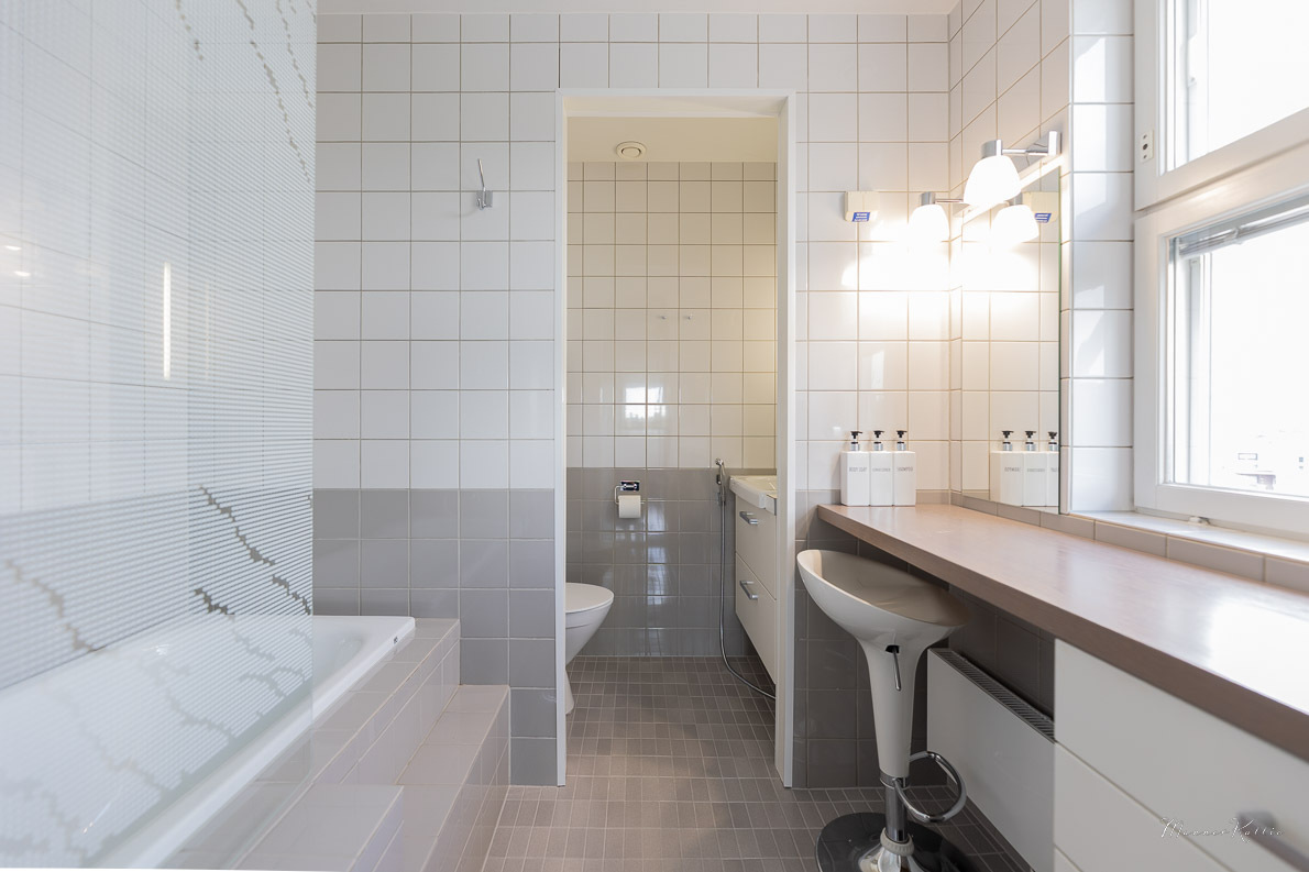 | Kylpyhuoneen kuvaus | Seinät (kaakeli), lattiat (laatta) |