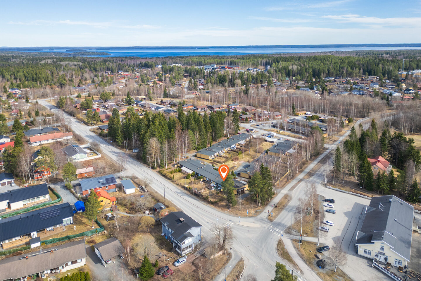 Asunnon piha-alueet tarjoavat viihtyisät puitteet ulkoiluun ja rentoutumiseen. Lähikauppa on vain sadan metrin päässä, ja koulut sekä päiväkoti löytyvät lyhyen kävelymatkan päästä. Liikenneyhteydet ovat sujuvat, sillä bussipysäkki sijaitsee vain 50 metrin päässä ja autolla pääsee helposti liikkumaan.