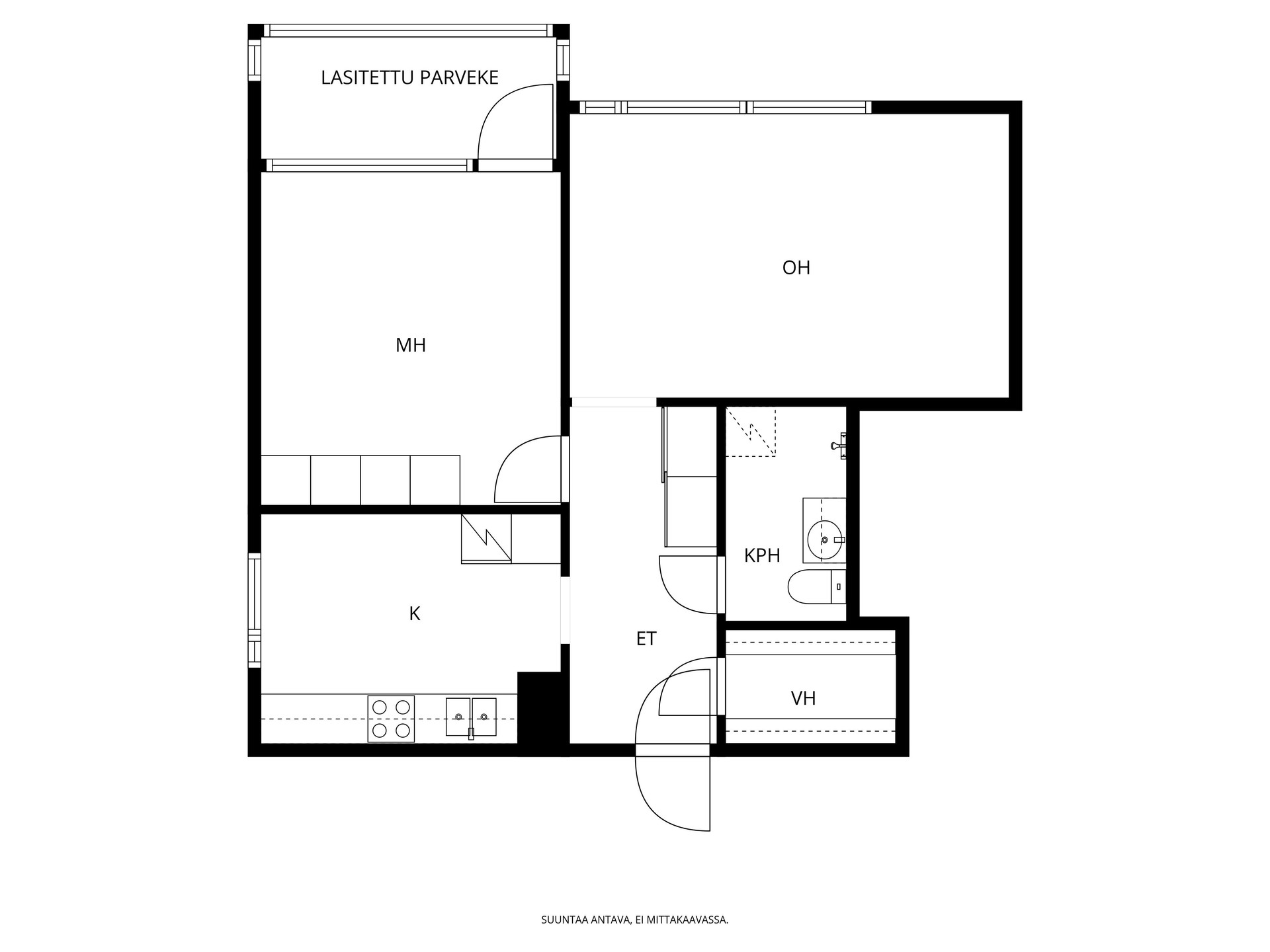 | Huoneistoselitelmä | 2h+k+kh,lasitettu parveke |
