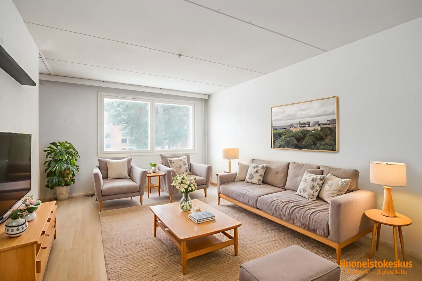 | Olohuoneen kuvaus | Seinät (tapetti ja maali), lattiat (laminaatti) |