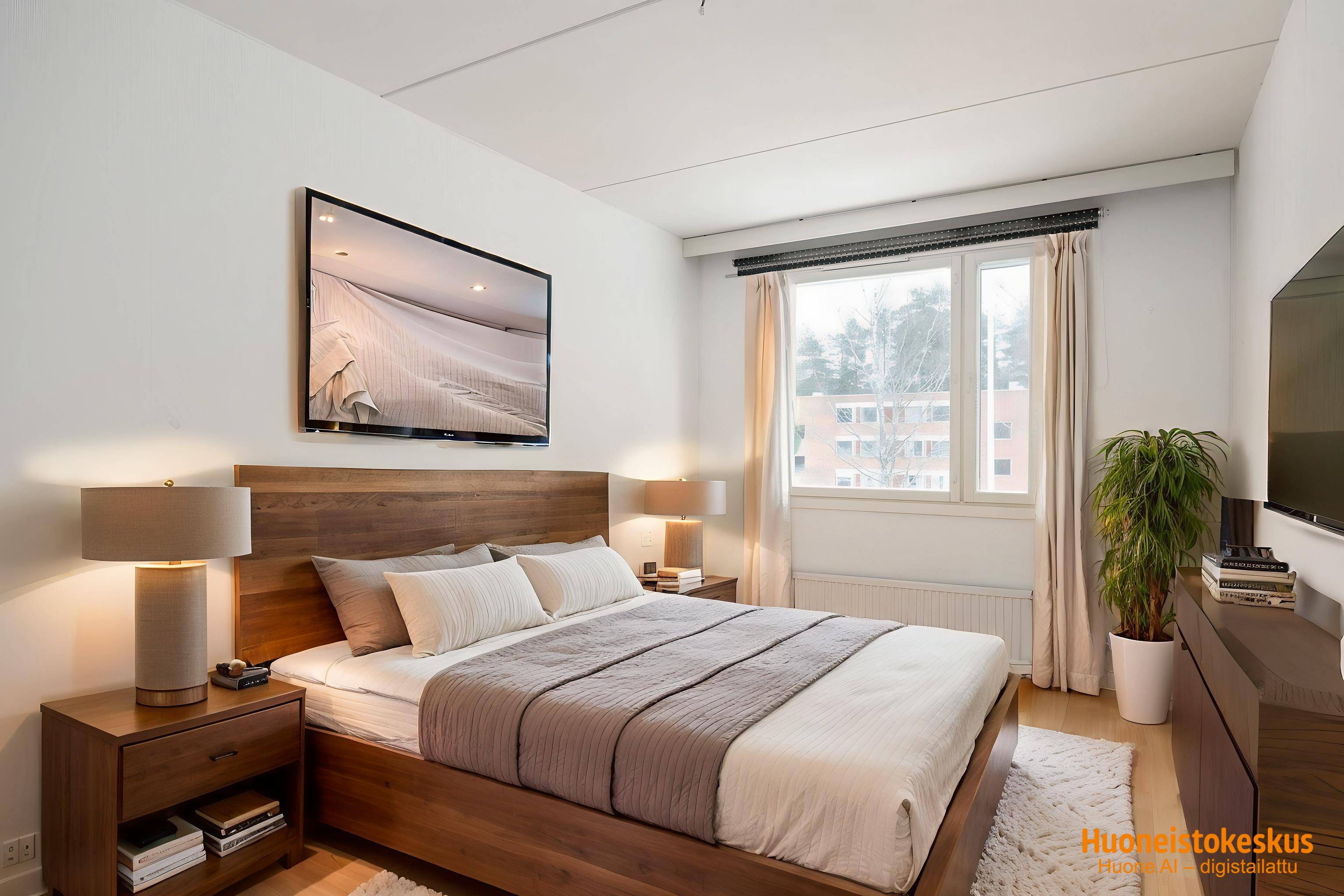 | Makuuhuoneen kuvaus | Lukumäärä: 1, seinät (tapetti), lattiat (laminaatti) |