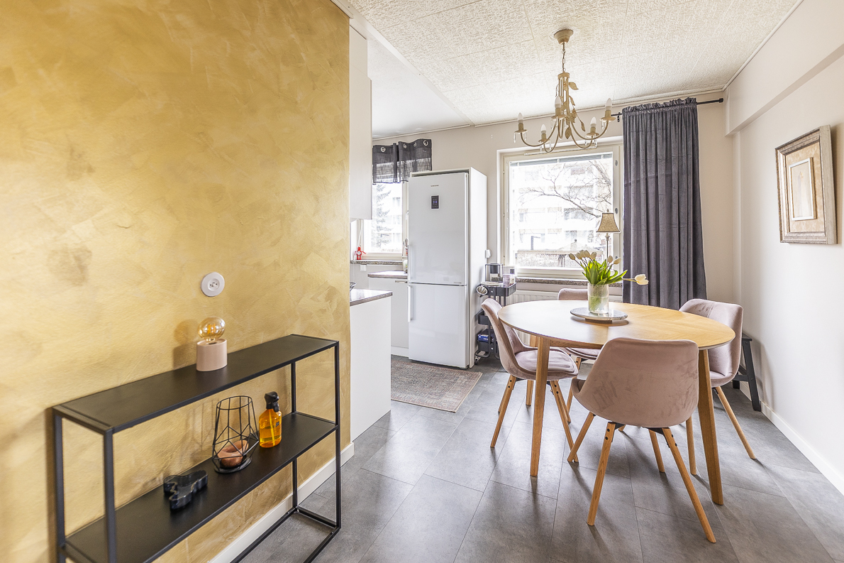 Asunnossa on kolme hyvänkokoista makuuhuonetta, joissa jokaisessa on reilusti säilytystilaa. Keittiön yhteydessä kodikas ruokailutila, johon mahtuu mukavasti ruokapöytä. Keittiötä on remontoitu vuonna 2017. Kylpyhuone on uusittu vuonna 2016, ja makuuhuoneisiin on tehty pintaremontti vuonna 2023.