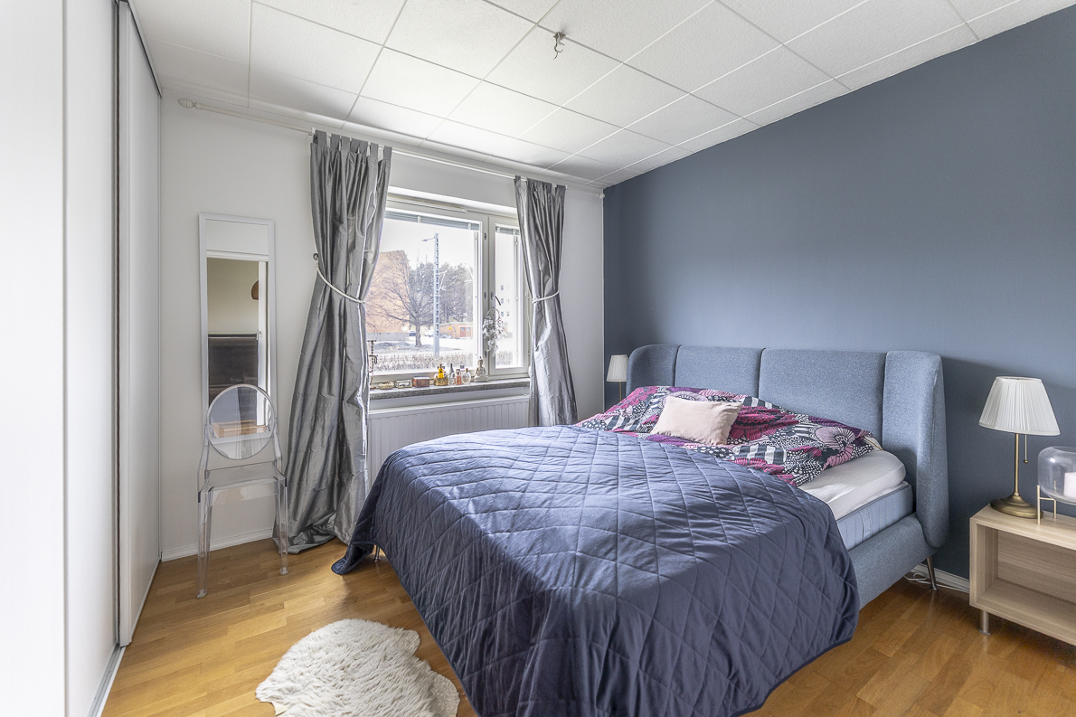 | Makuuhuoneen kuvaus | Lukumäärä: 3, seinät (maali ja tapetti), lattiat (parketti), Kaksi isoa makuuhuonetta isoine liukuovikaapistoineen sekä yksi hieman pienempi, jossa sisäänrakennettu kaappi. Kiviset upeat ikkunalaudat. Kaikkien makuuhuoneiden seinät ja kahden listat pintaremontoitu 2023. |