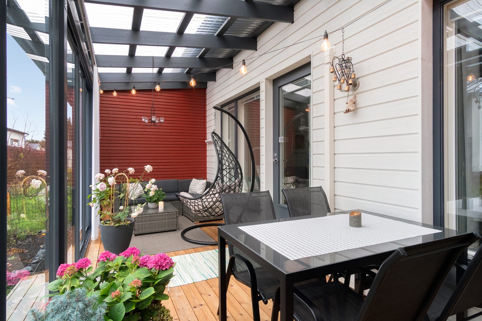 Asunnon kruunaa tilava lasitettu terassi, joka on täydellinen paikka nauttia rauhallisista iltapäivistä. Piha-alue tarjoaa vehreät näkymät ja lisää tilaa ulkoiluun. Asunto Oy Hämeenlinnan Louhetar tarjoaa myös hyvät säilytystilat ja autopistokepaikan pihassa.