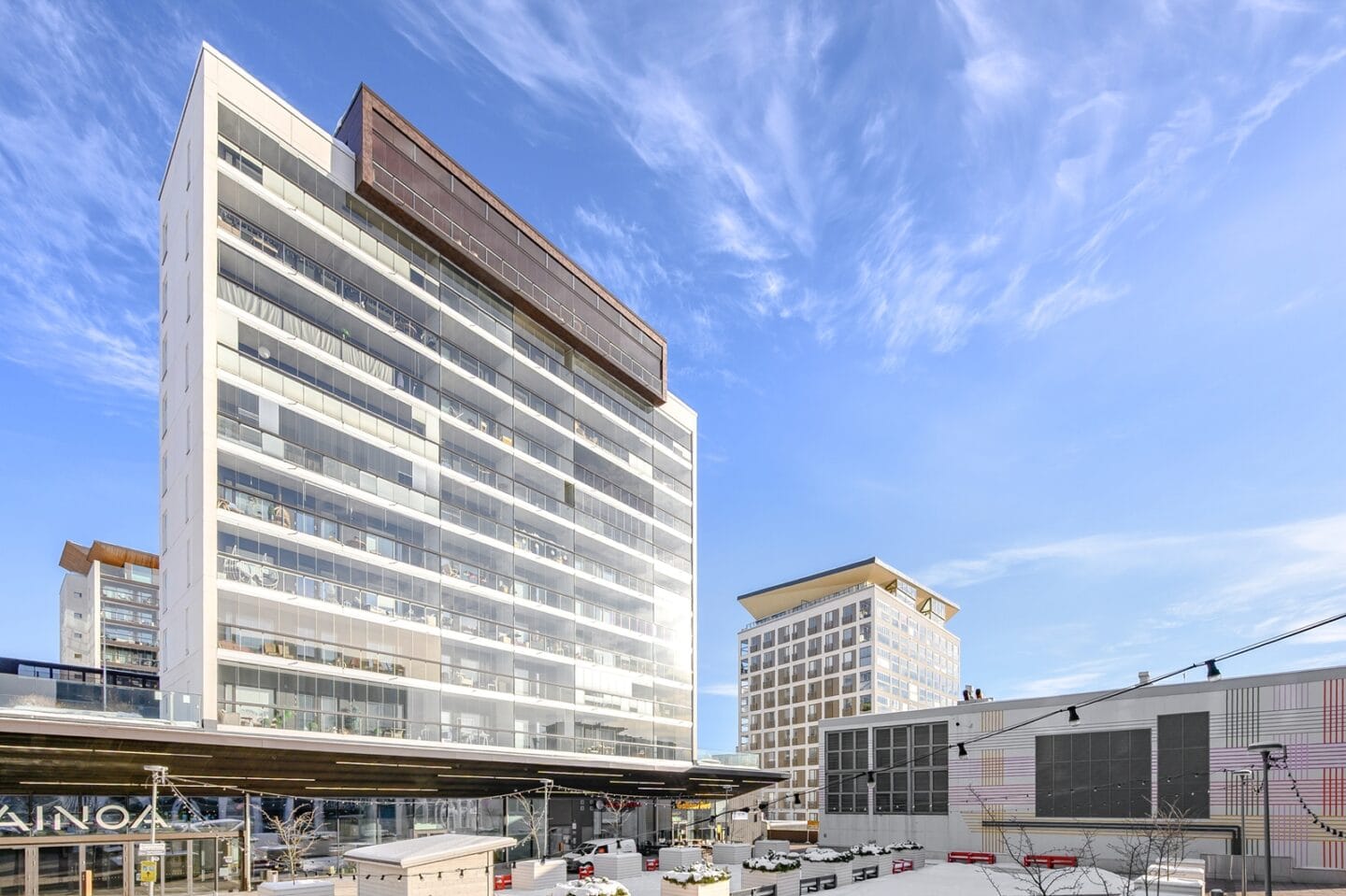 Hissillä pääset kätevästi alas ja vieressä Kauppakeskus Ainoan länsipäädyn sisäänkäynti.