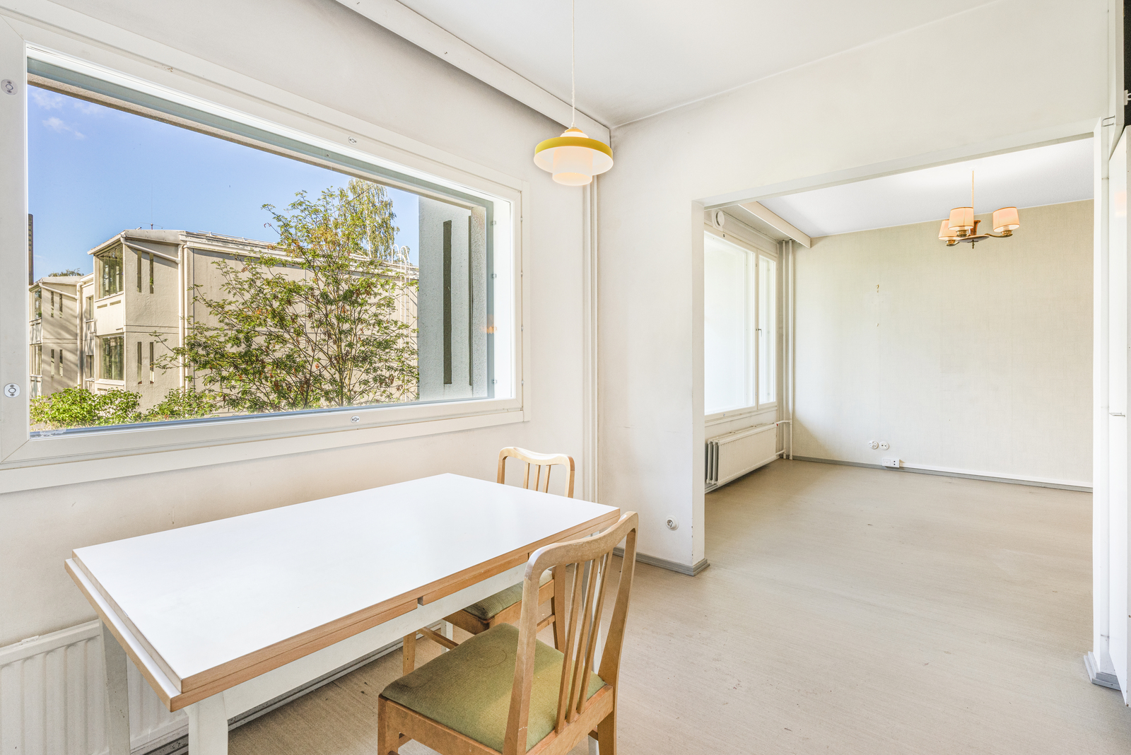Myynnissä on valoisa ja tilava kolmio, joka kaipaa päivitystä. Tästä saat tehtyä juuri omaan makuusi sopivan kodin tai tuottavan sijoituskohteen!