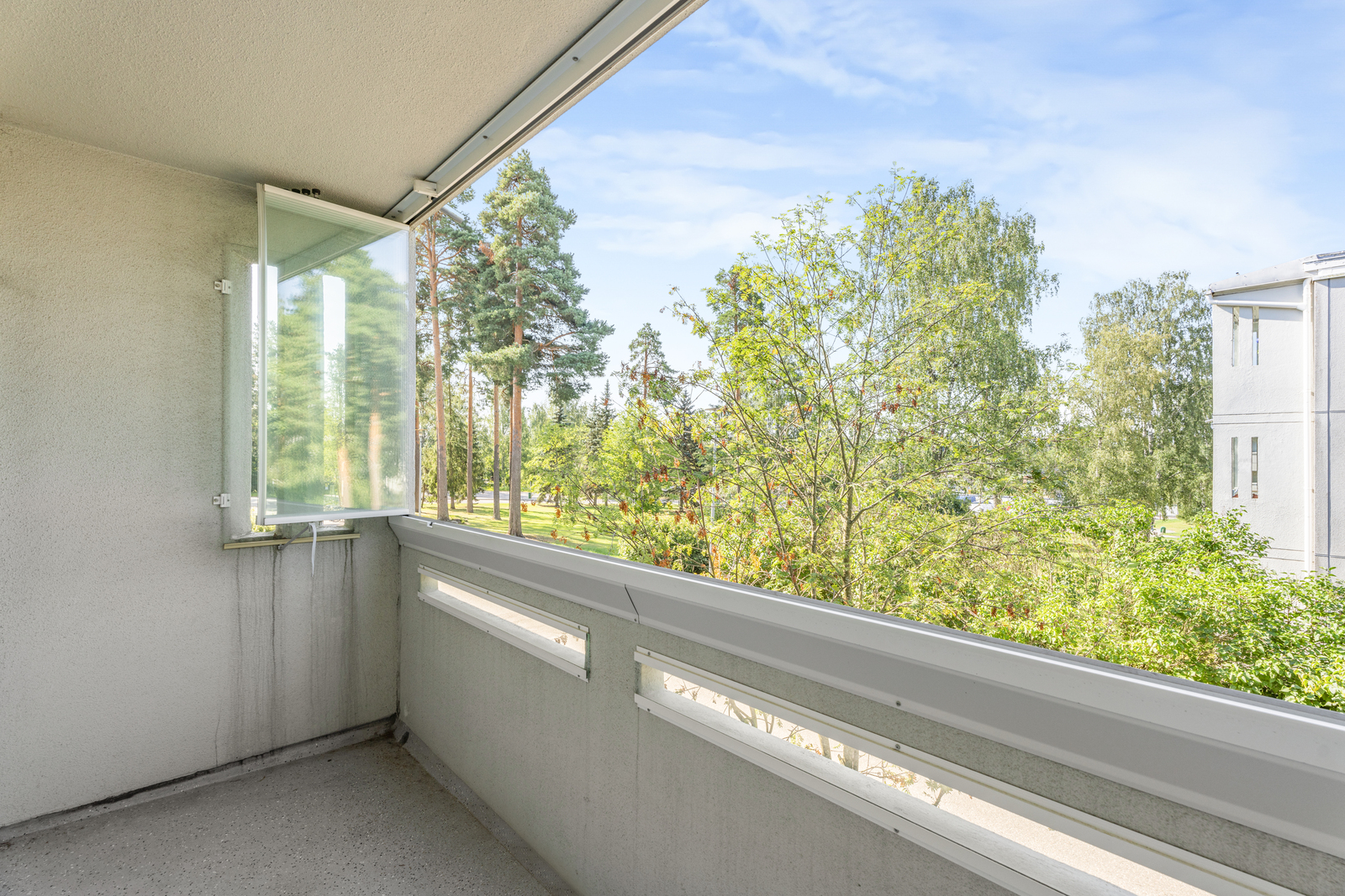 Asunto sijaitsee ensimmäisessä kerroksessa, mutta ei katutasossa. Huoneistossa on lasitettu parveke, joka tuo lisää tilaa ja käyttömahdollisuuksia. Lisäksi vaatehuone.