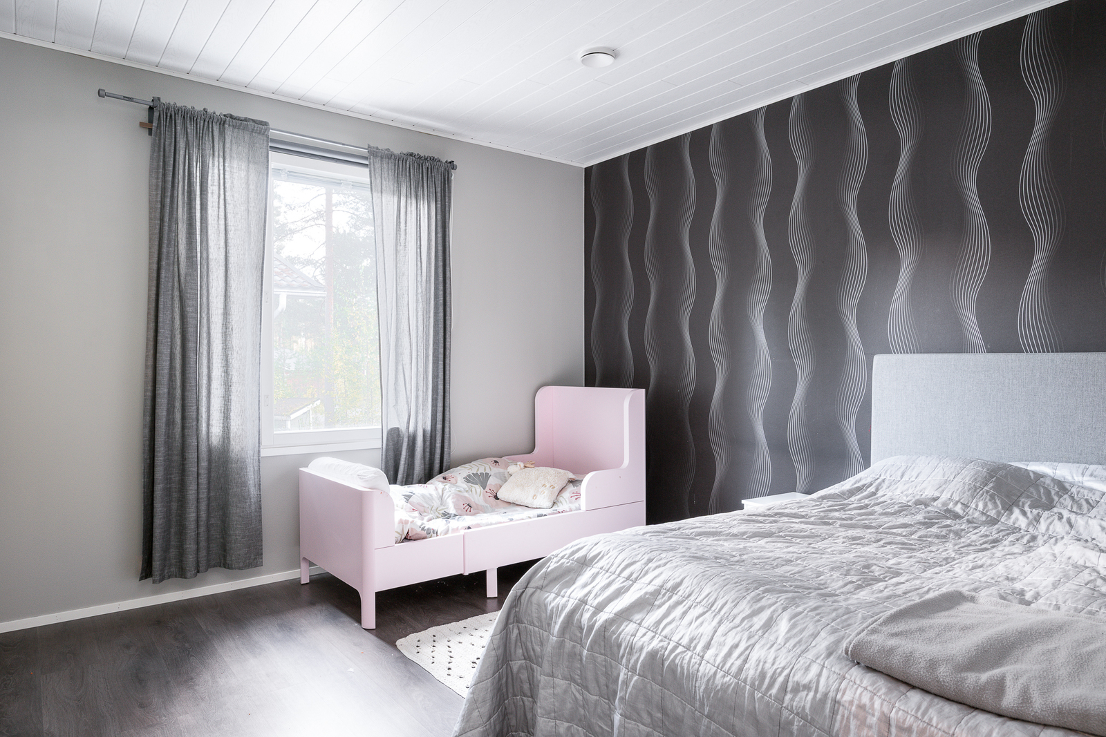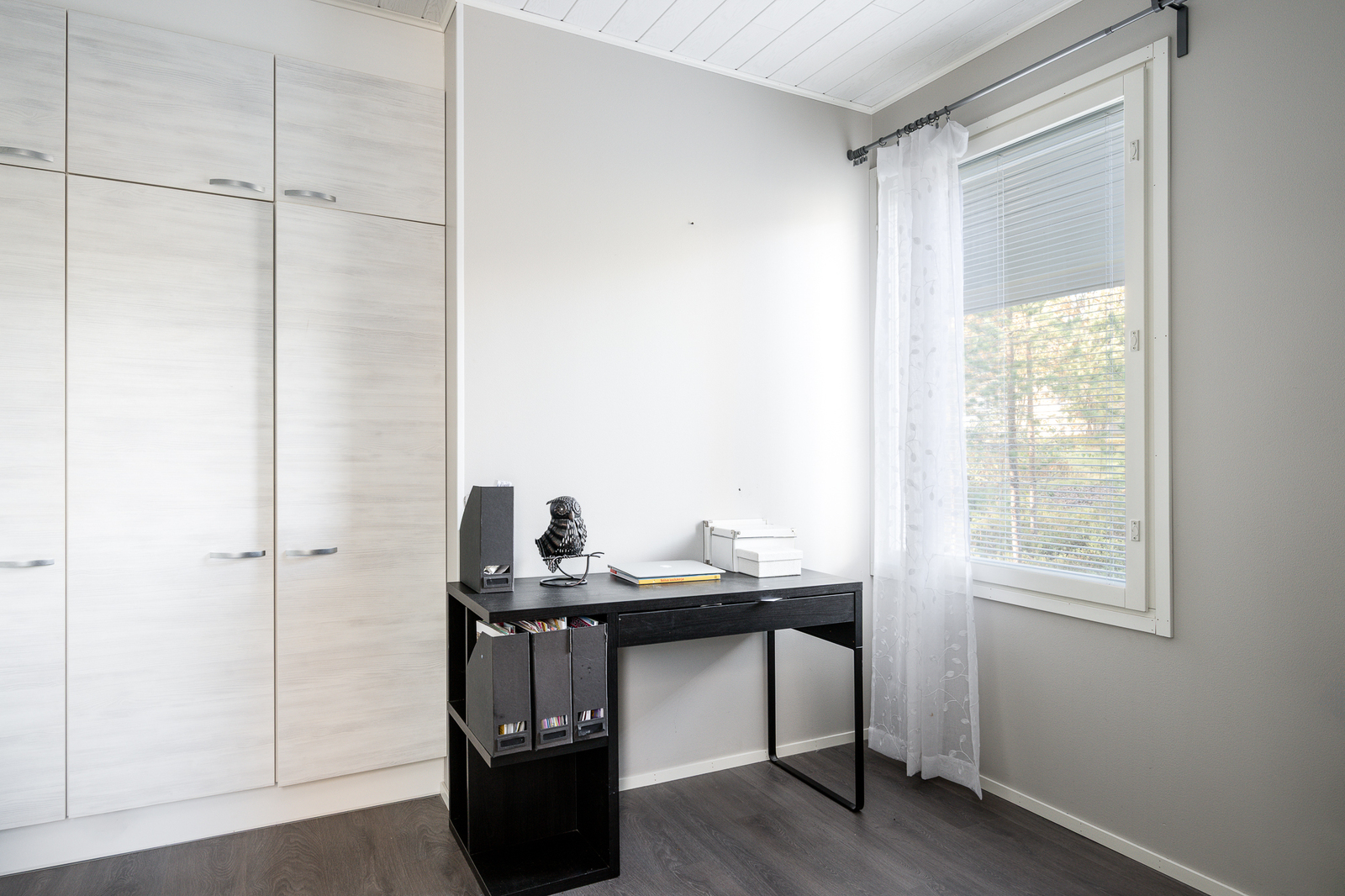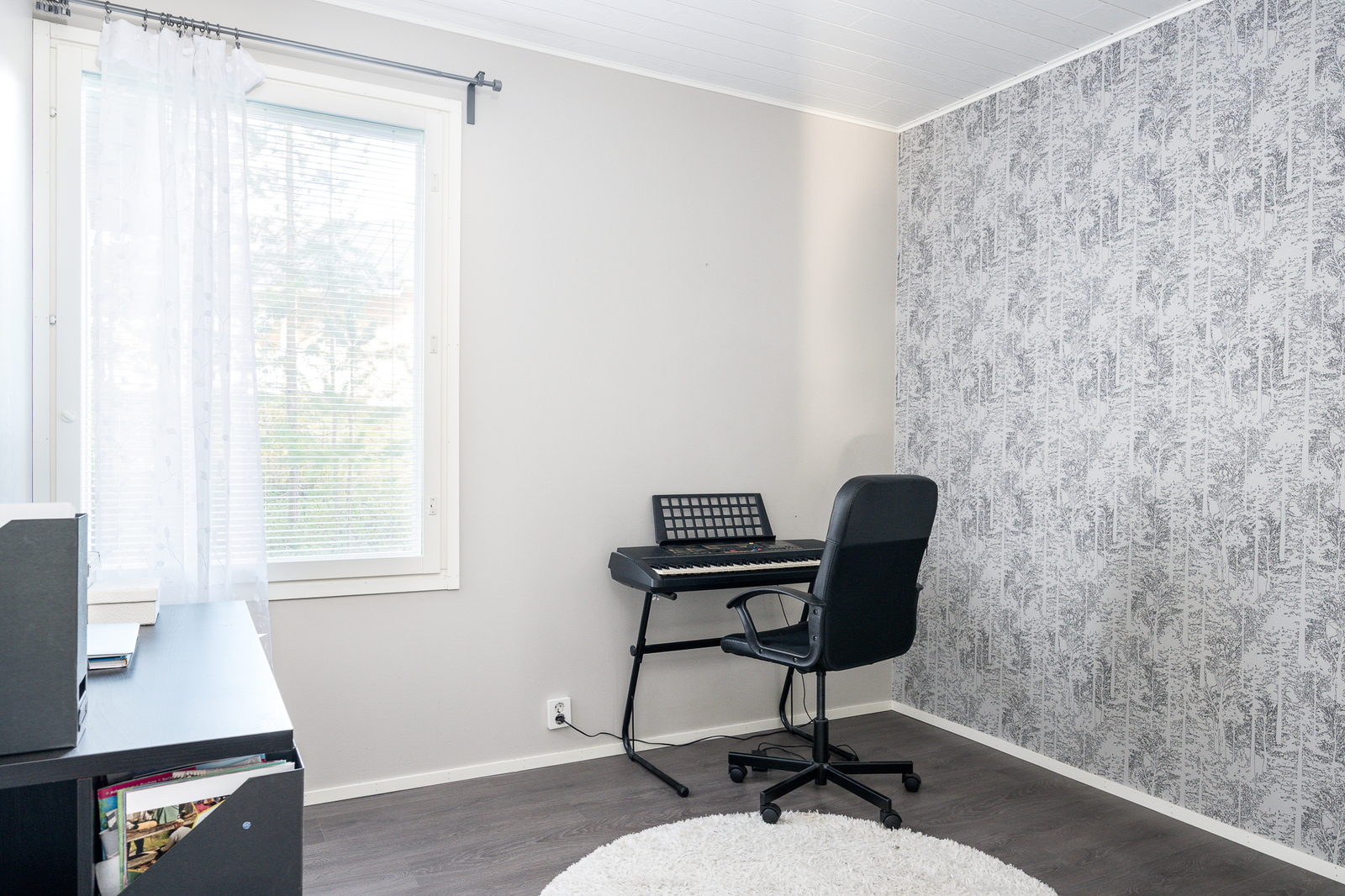 | Makuuhuoneen kuvaus | Lukumäärä: 3, seinät (tapetti ja maali), lattiat (laminaatti) |