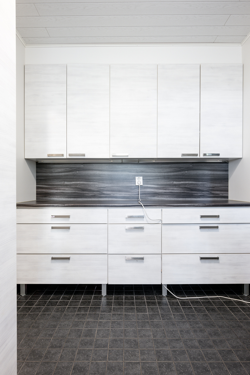 | Kodinhoitohuoneen kuvaus | Lattialämmitys, pesuallas, lattiakaivo ja kurapiste, lattiat (laatta), seinät (maali) |