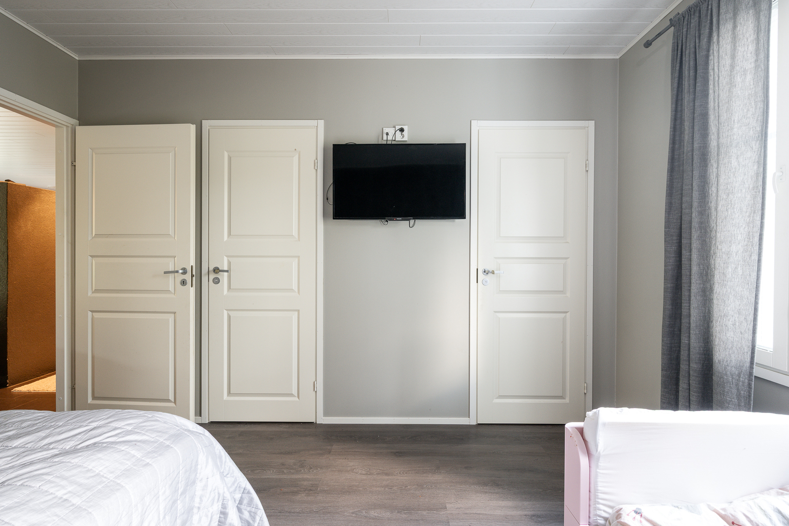 Kolme, tilavaa makuuhuonetta, yhdessä vaatehuone