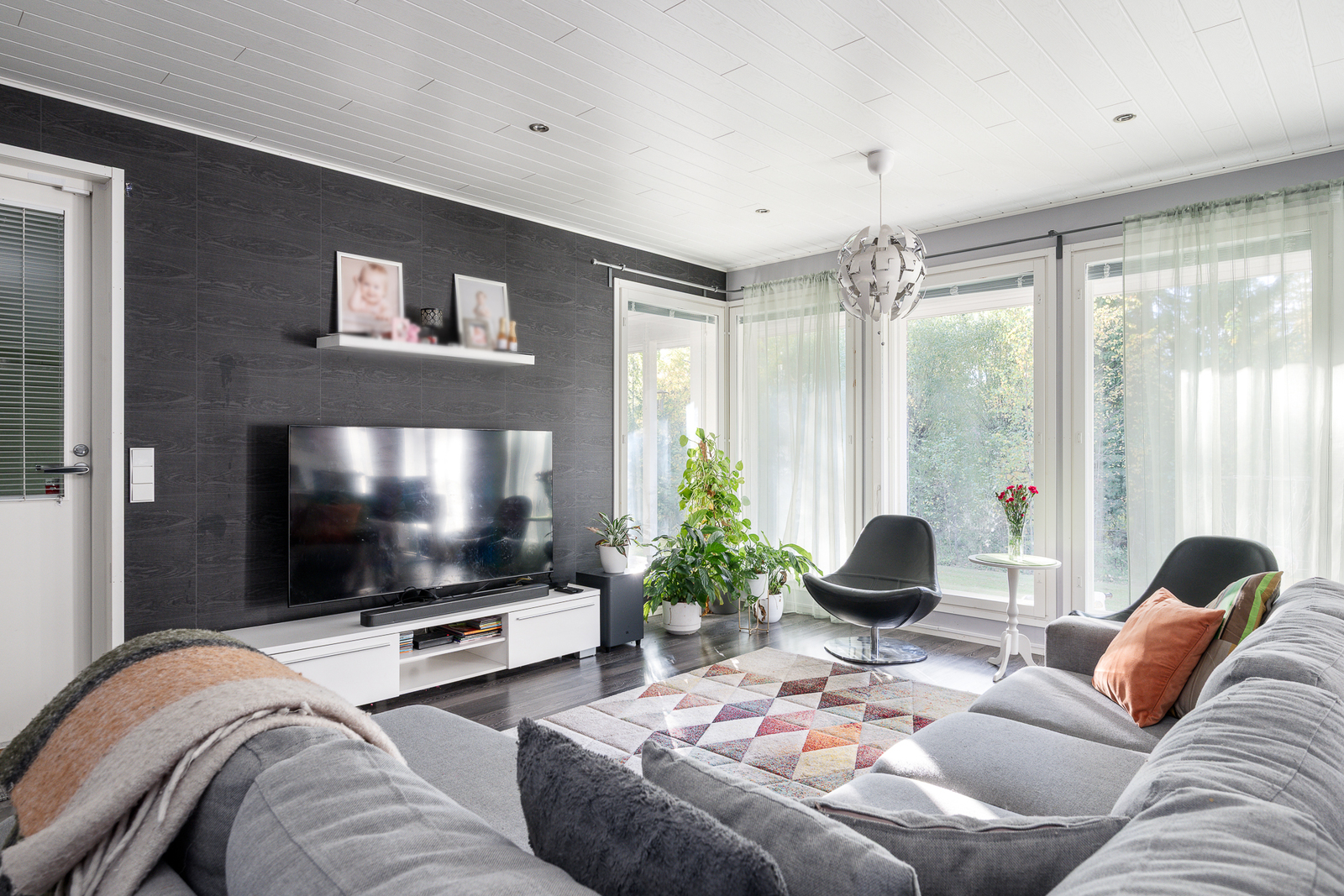 Tämä koti sijaitsee hyvien liikenneyhteyksien varrella ja tarjoaa monipuoliset tilat niin asumiseen kuin vapaa-ajanviettoonkin.