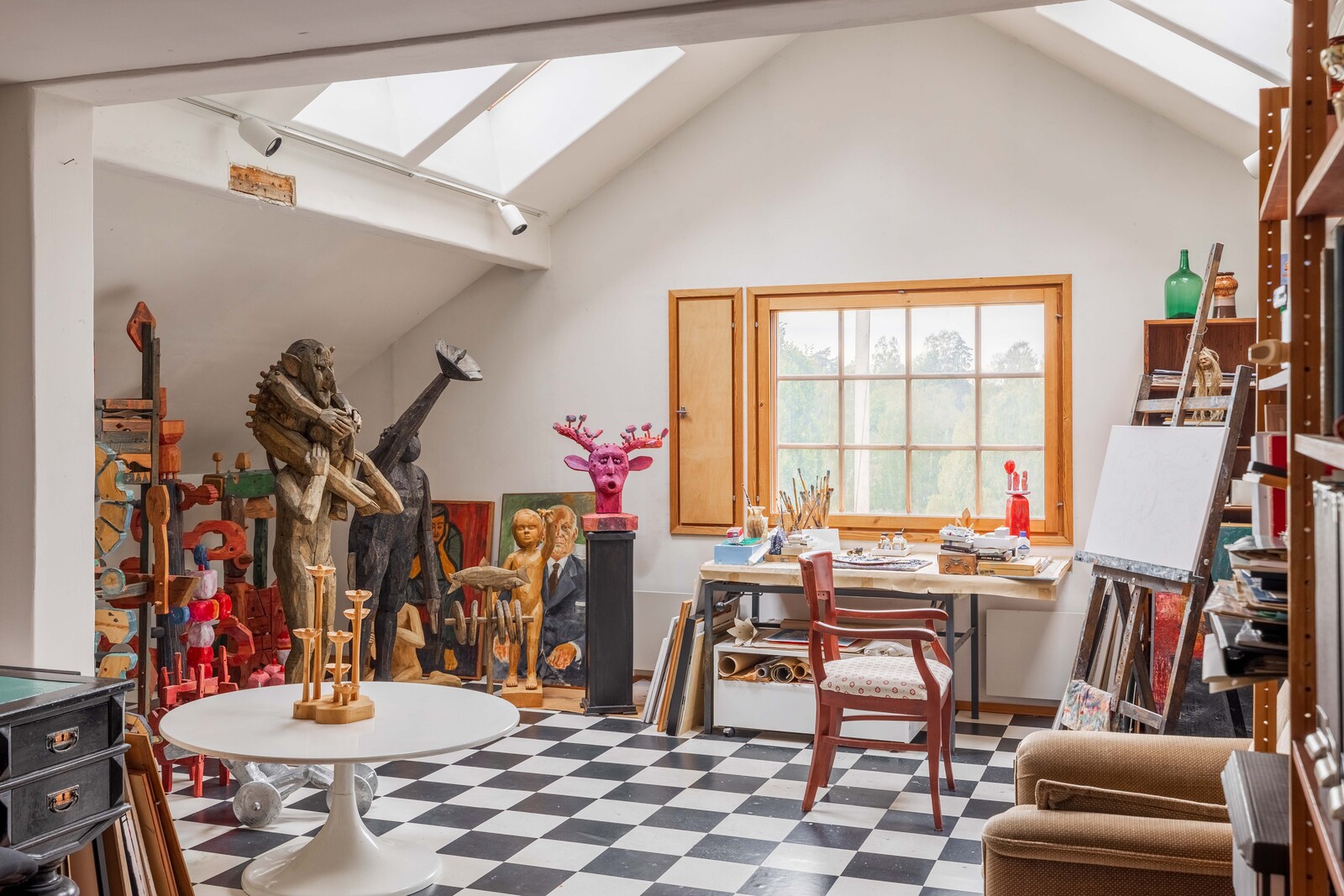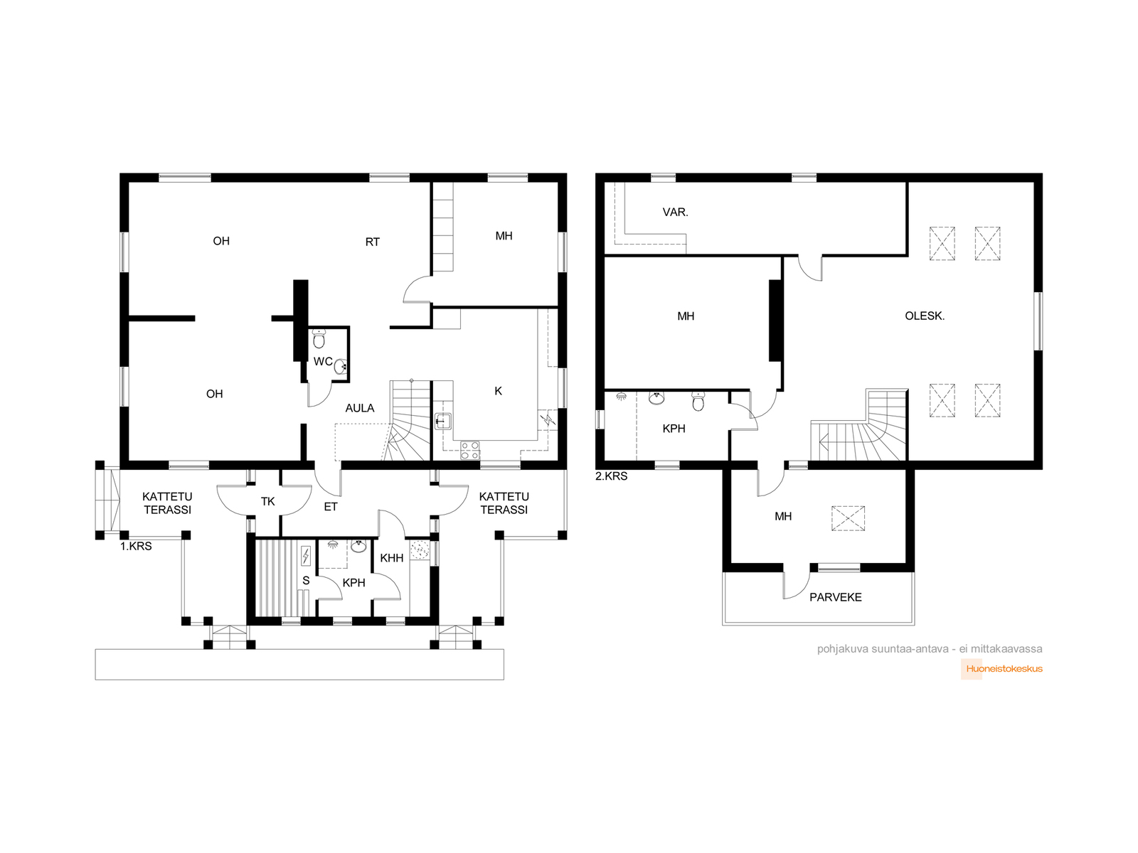 4h, k, rt, ateljeetila, kylpyhuone, 2 wc, saunatilat ja varastotilat, parveke ja katetut kuistit.. |