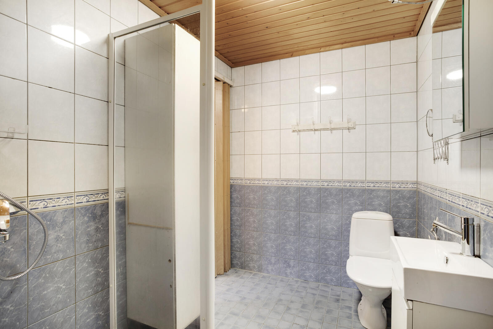 Allaskaappi, lattialämmitys, wc-istuin, suihku ja kiinteät valaisimet, seinät (kaakeli), lattiat (laatta), Alkuperäinen |