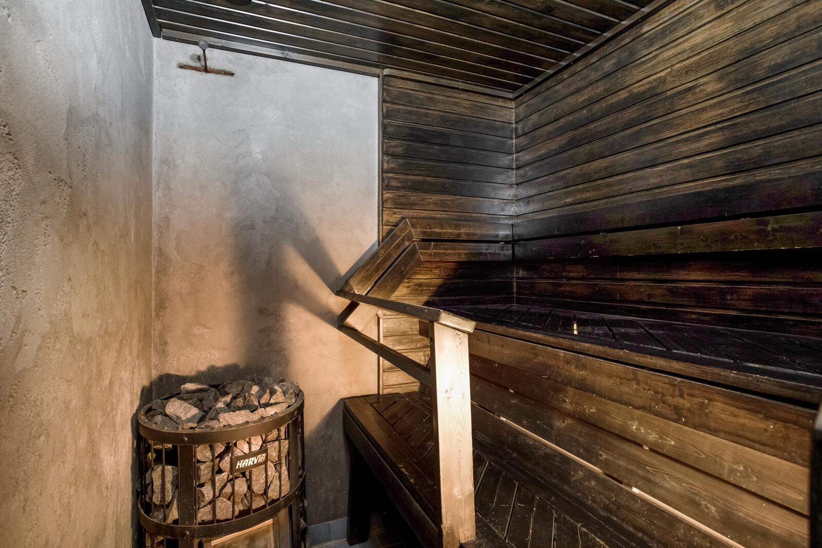 Pihasaunassa on puulattia ja paneeliseinät, puukiuas. Ei ole pesumahdollisuutta. |