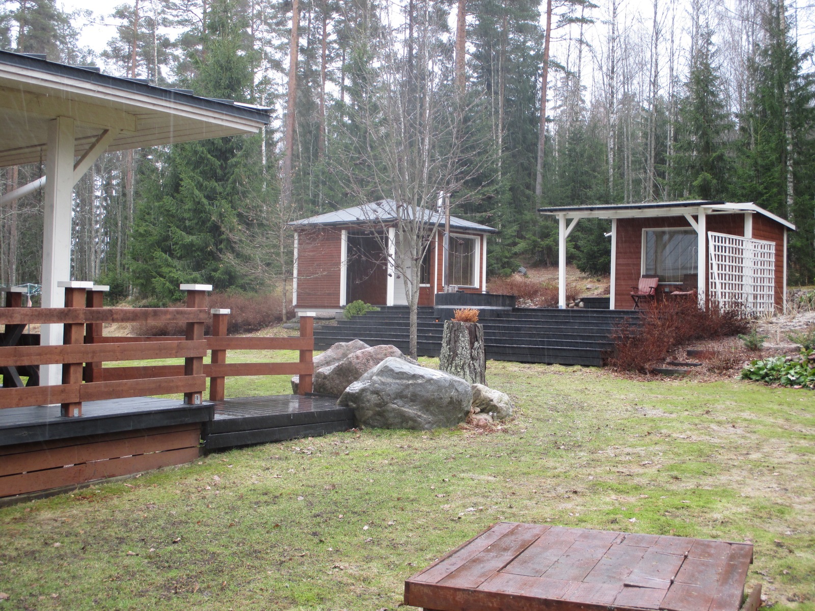 Pihapiirissä on nurmikkoa ja joitakin istutuksia, omalta tontilta löytyvät myös hyvät sieni- ja marja-apajat.