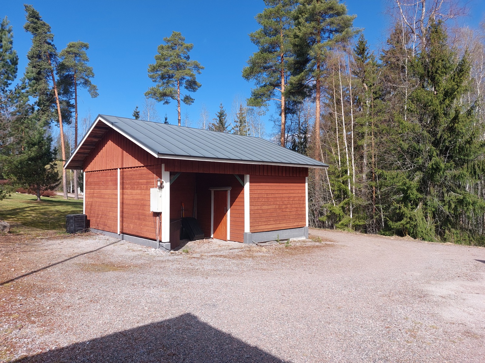 Autotalli ja saunarakennus, kota, vierasmaja. Autotalli on äänieristetty ja sen lisänä on varasto sekä katos.