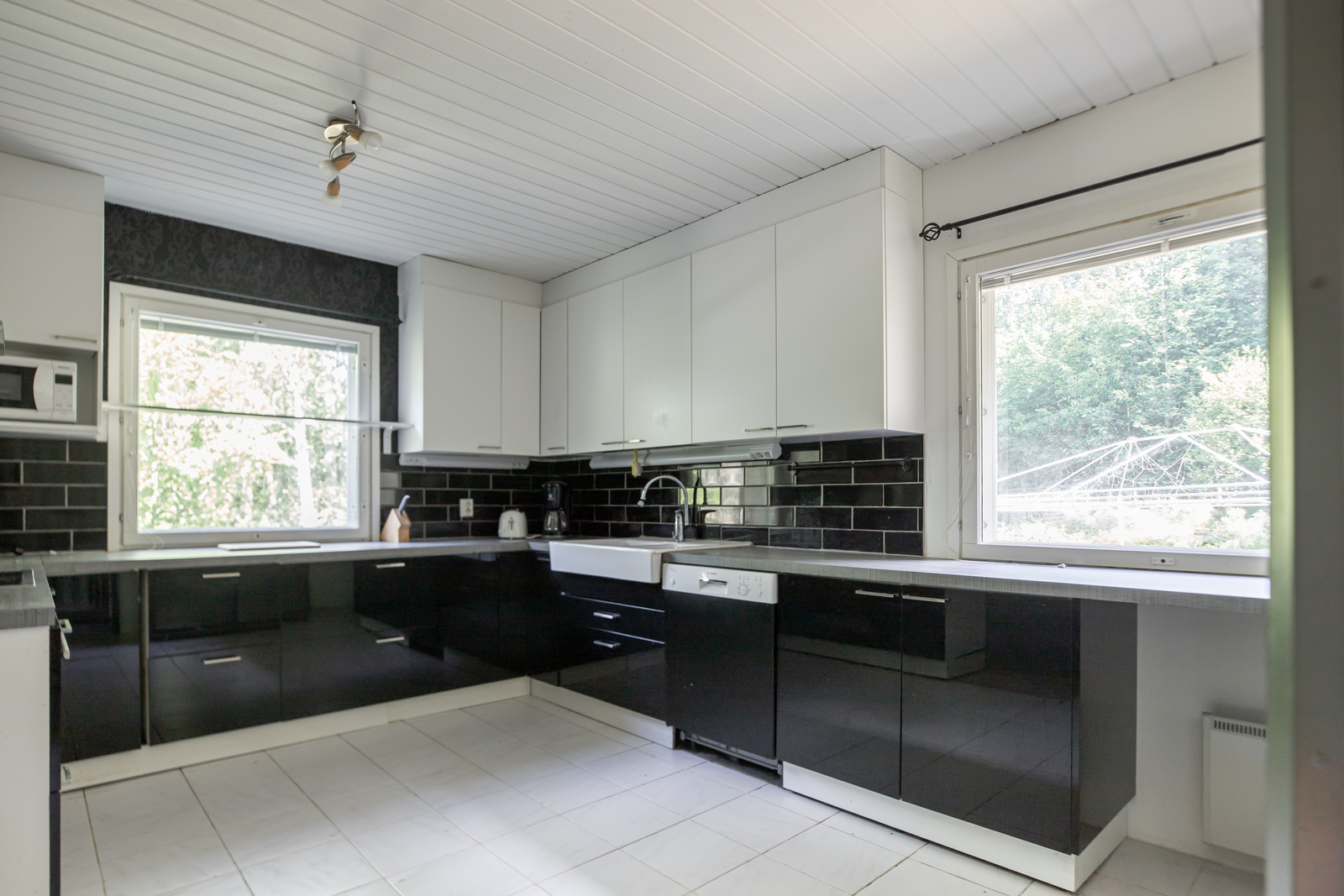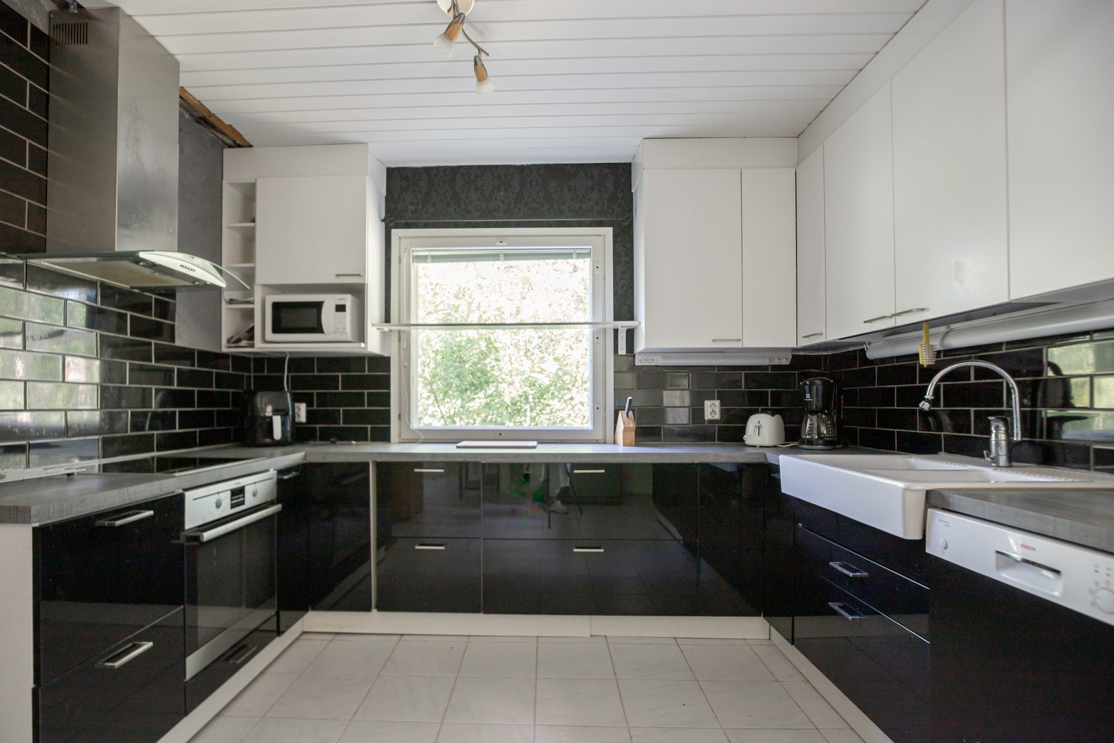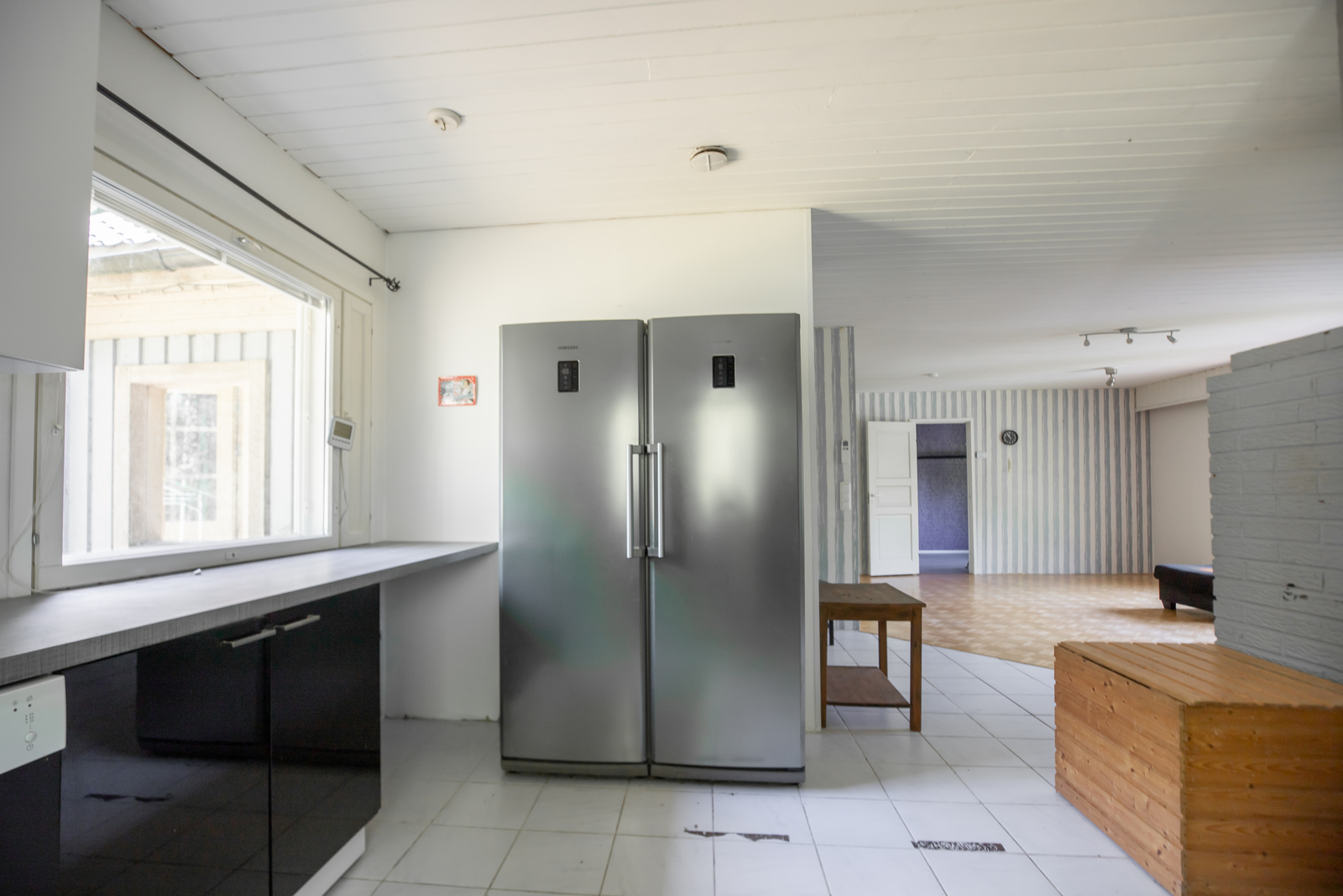 Liesi (Induktioliesi ja erillisuuni), seinät (maali ja osalaatoitus), lattiat (laatta), erillisuuni, erillinen pakastin, astianpesukone, jääkaappi, liesi ja liesituuletin / hormi, lattialämmitys |