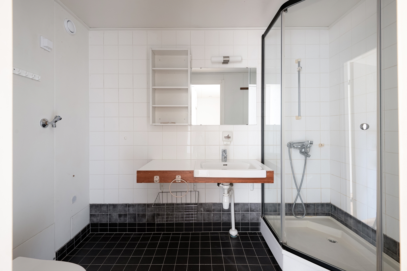 Suihku, wc-istuin ja pesukoneliitäntä, seinät (kaakeli), lattiat (laatta) |