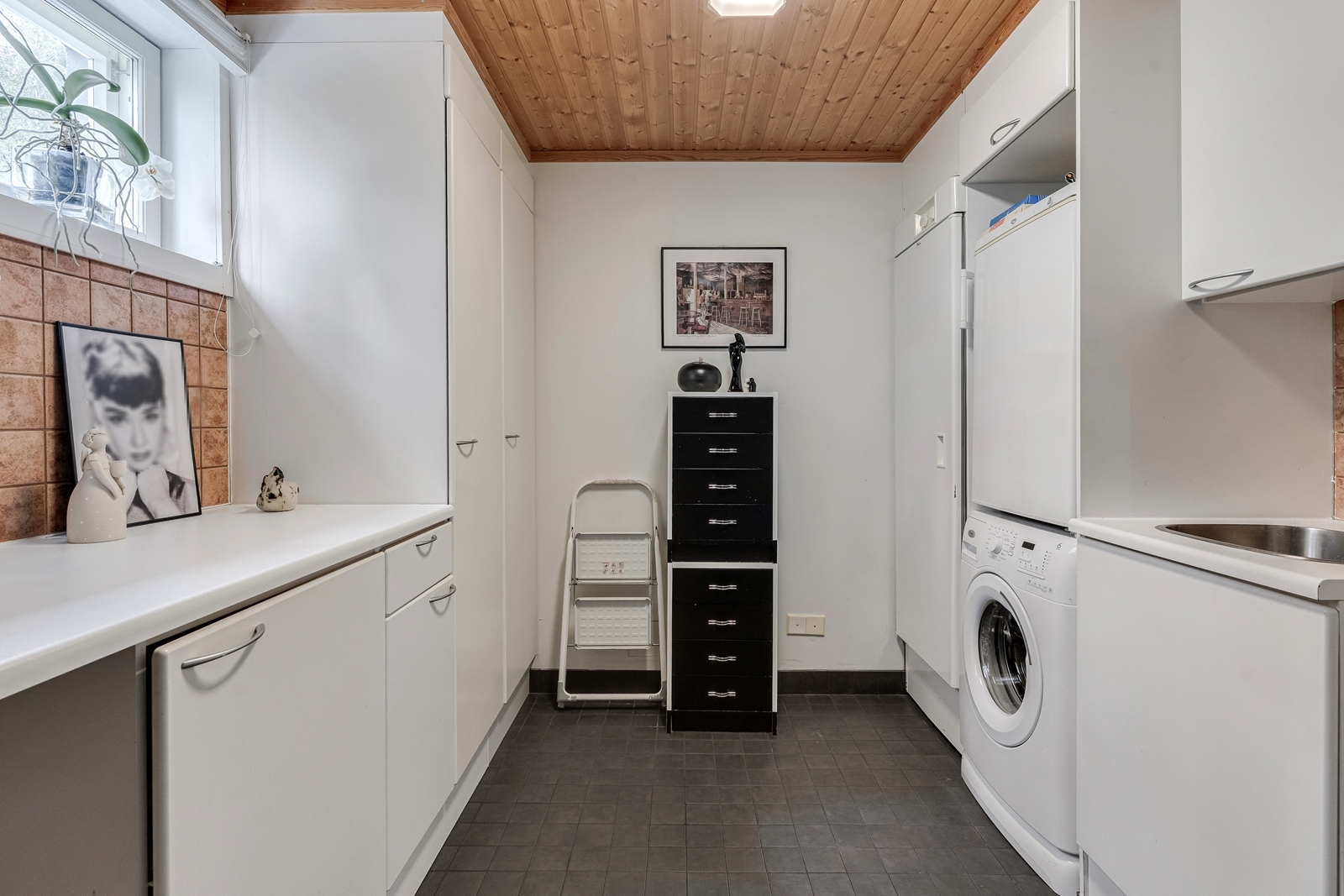 Lattiakaivo, pyykkikaapit, kuivauskaappi ja pesukoneliitäntä, lattiat (laatta), seinät (maali ja kaakeli) |