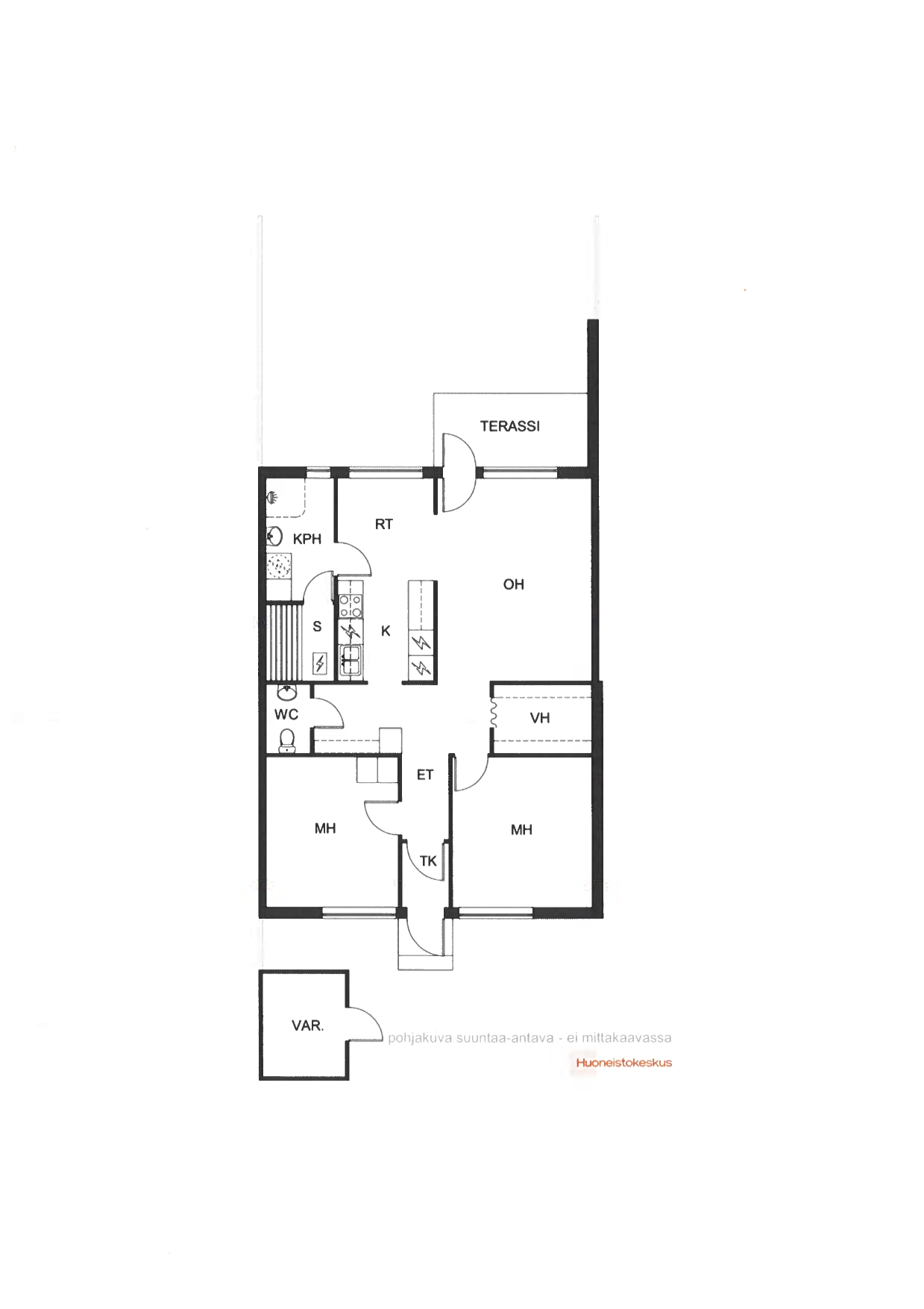 Oh, 2 mh, s, kph, erill. wc, terassi |