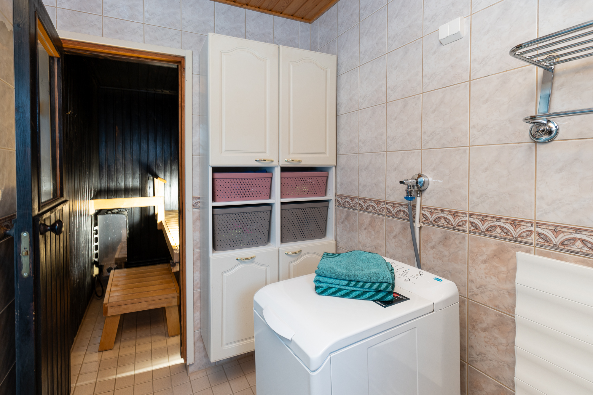 Asunnossa on kaksi makuuhuonetta, avara olohuone, josta on käynti omalle terassille, sekä sauna rentoutumiseen. Keittiö on hyvin varusteltu ja siellä on kaikki tarvittava arjen sujuvuuteen. Kylpyhuoneessa on lattialämmitys, mikä tuo mukavuutta erityisesti talvikuukausina.