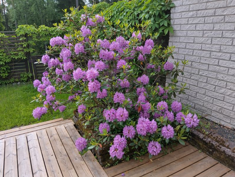 Puutarhamainen piha-alue on aidattu ja tarjoaa viihtyisän paikan ulkoiluun ja rentoutumiseen. Terassilla on markiisi, joka suojaa auringolta ja luo mukavan varjoisan paikan kesäpäivistä nauttimiseen.