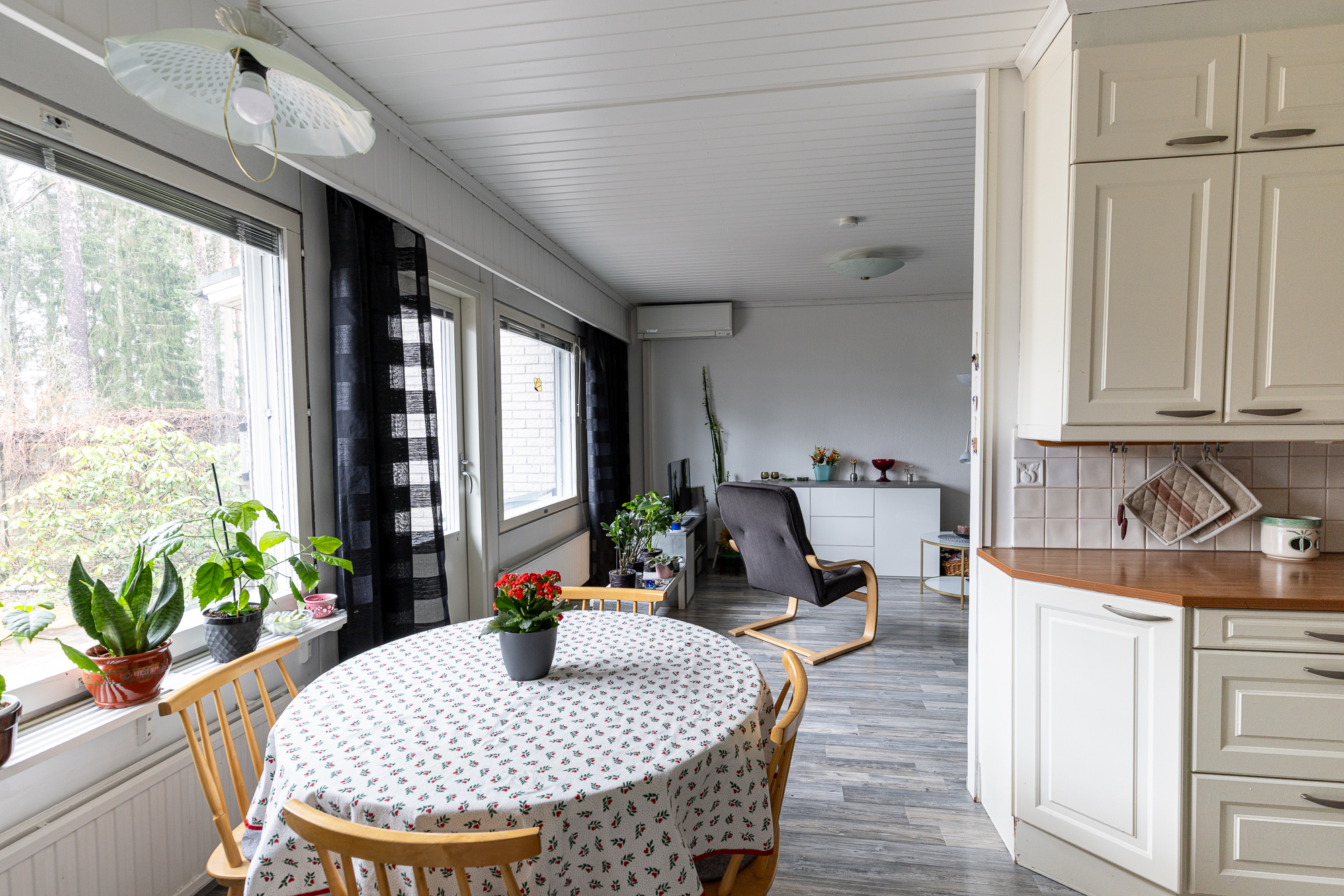 Tämä valoisa ja tilava rivitaloasunto Lohjan Perttilässä tarjoaa erinomaiset puitteet mukavaan asumiseen. Asunto sijaitsee rauhallisella ja vehreällä alueella, jossa on hyvät kulkuyhteydet ja monipuoliset palvelut lähellä. Perttilän alakoulu ja päiväkoti ovat vain lyhyen kävelymatkan päässä, mikä tekee tästä kodista ihanteellisen perheille.