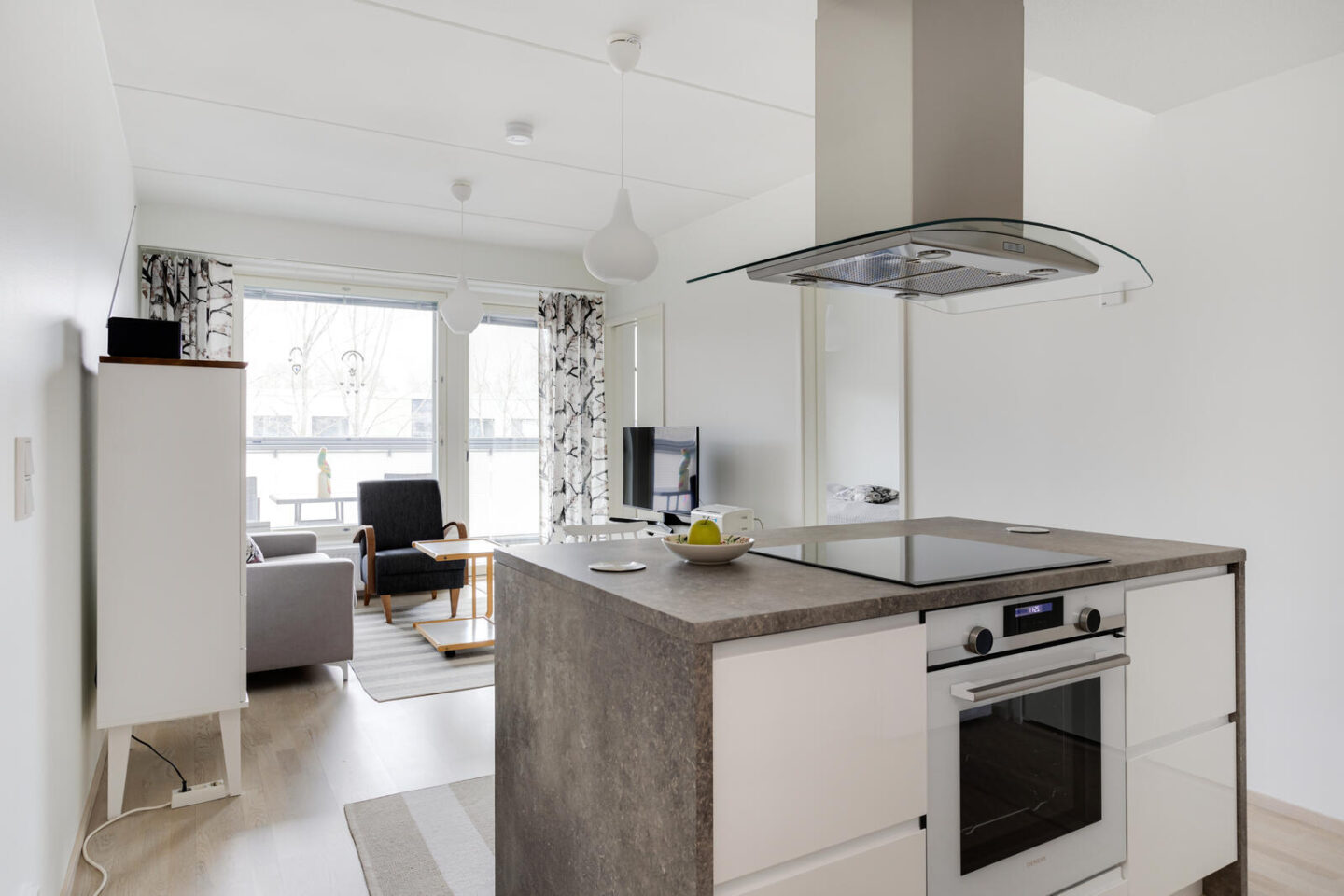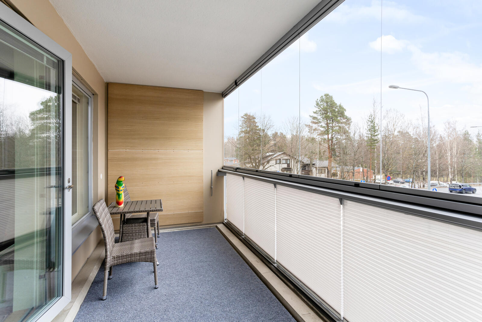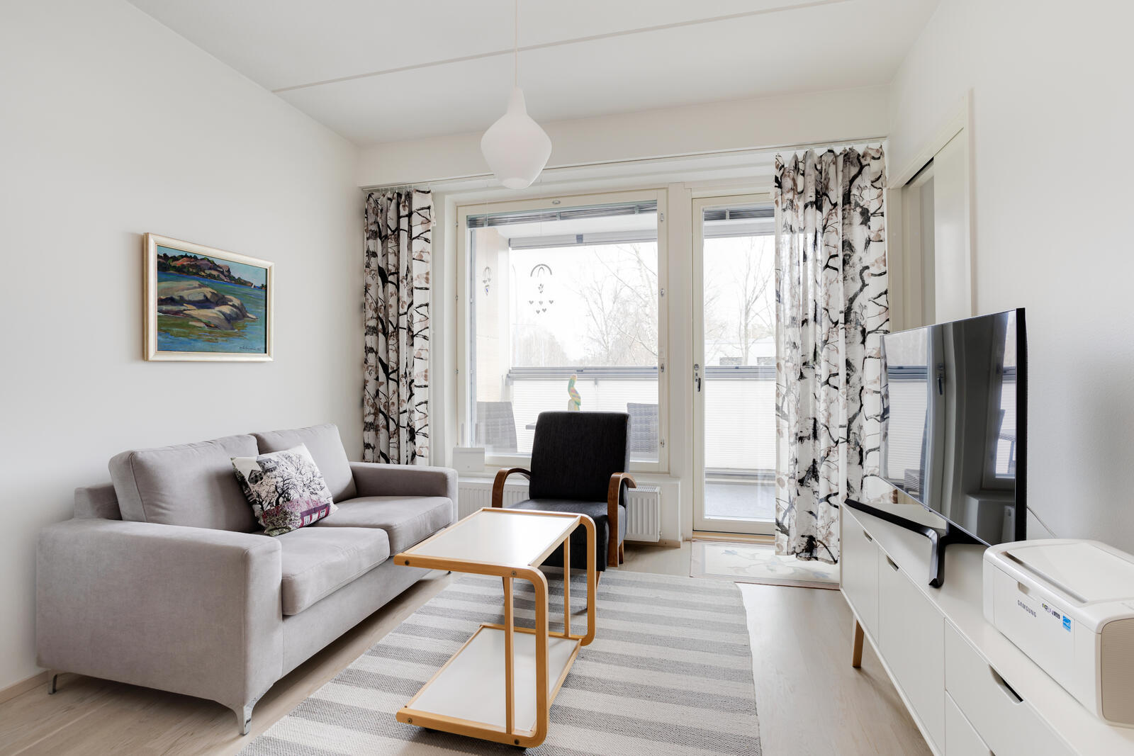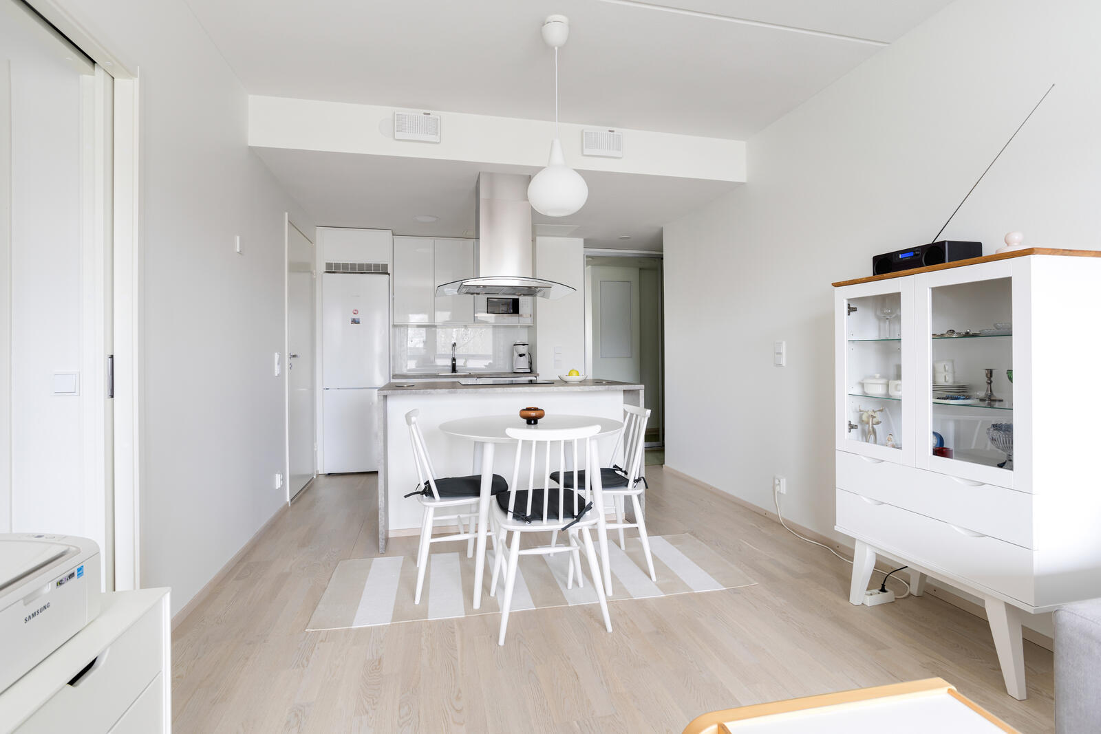 Hyvällä paikalla palveluiden ja meren tuntumassa hyvä kuntoinen kaksio. Asunnossa on toimiva pohjaratkaisu ja reilusti säilytystilaa. Keittiön saareke on käytännöllinen ja erottaa keittiön vähän omakseen, mutta on kuitenkin osana olohuonetta. Koko asunnon levyinen lasitettu parveke tuo mukavasti lisätilaa ja kruunaa viihtyisän kokonaisuuden. Asunto sijaitsee ensimmäisessä asuinkerroksessa, ei maan tasalla.