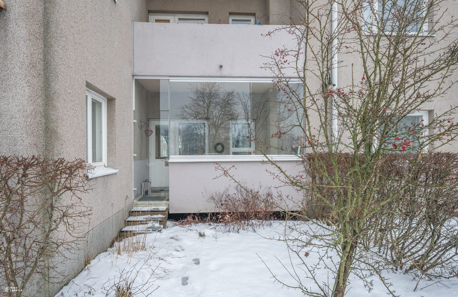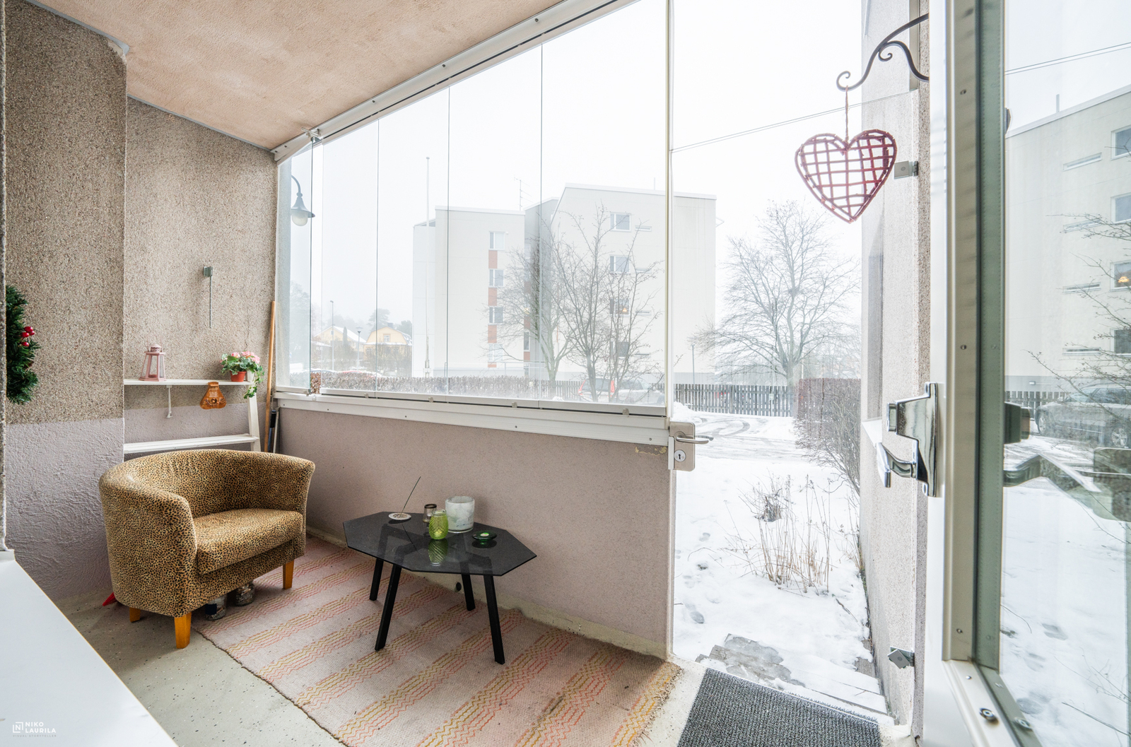 Pieni citykoti tarjolla – ensimmäisen kerroksen kaksio lasitetulla parvekkeella pihalle päin!