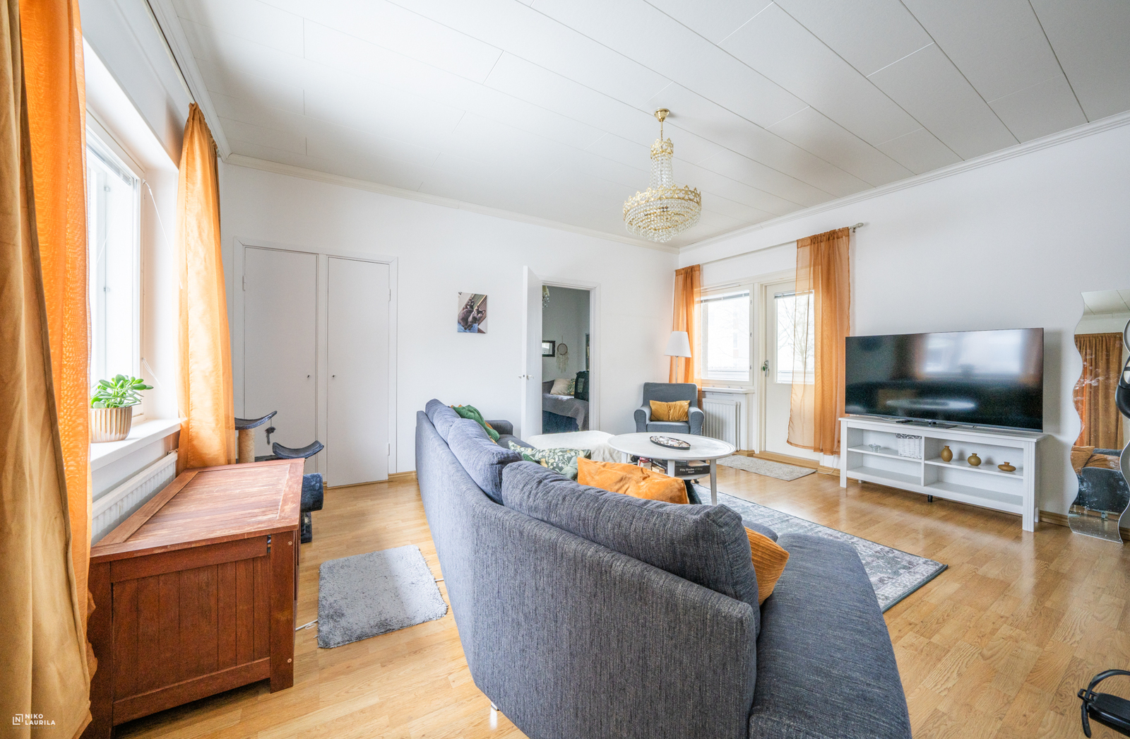 | Olohuoneen kuvaus | Seinät (maali), lattiat (laminaatti) |