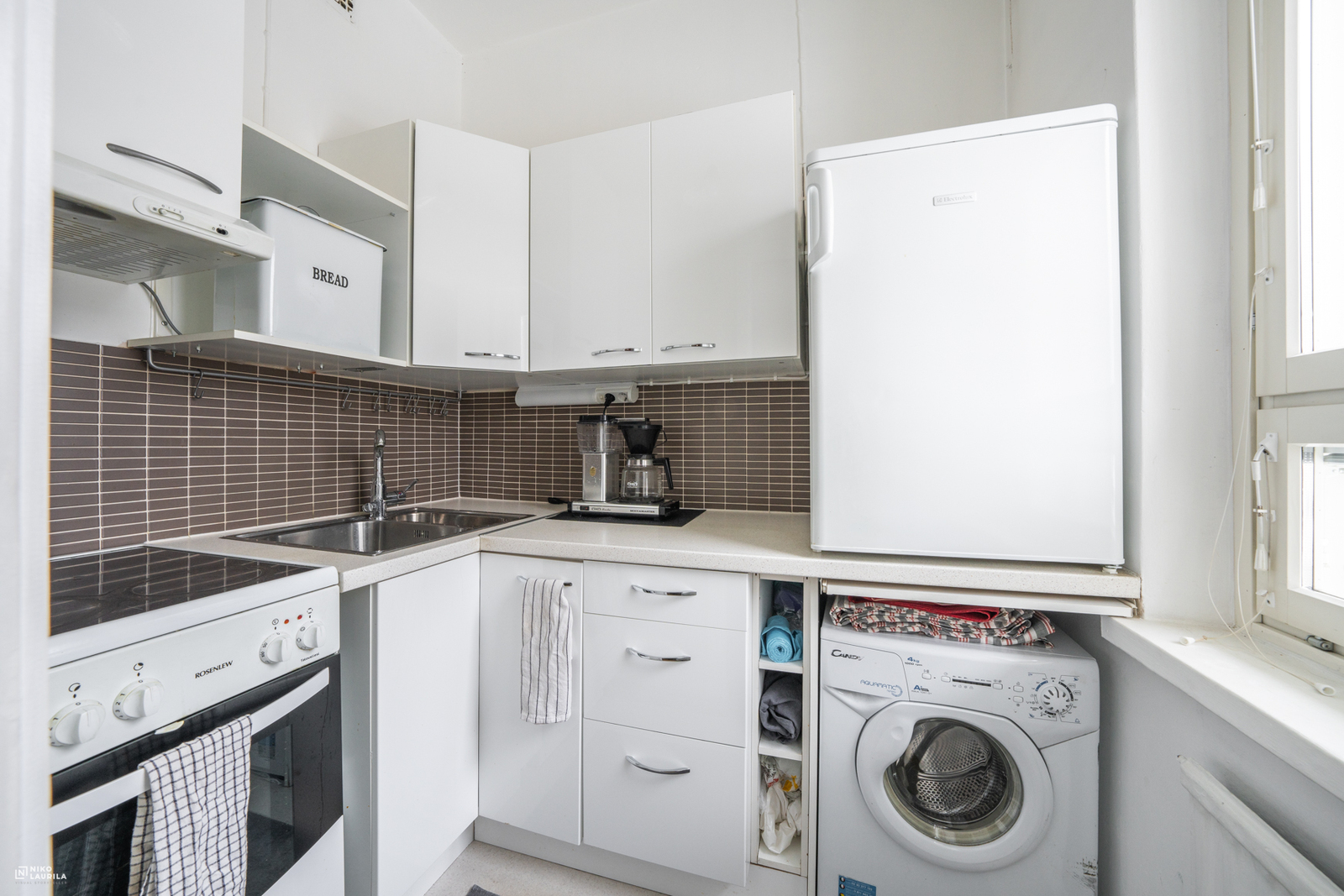 Tässä viehättävässä pikkukodissa jossa ikkunat kahteen suuntaan, viihtyy varmasti. Olohuoneesta lasitetulle parvekkeelle, joka siis pihalle päin, eli erittäin rauhallista nautintoa tarjolla! Lasitetulta parvekkeelta pääsee pienelle piha-alueelle, jossa kukkapenkkejä ja kasvilaatikoita. Ikkunallisessa keittiökomerossa kaikki tarvittavat, jopa astianpesukoneellekin tilaa. Talon sijainti muutaman korttelin päässä keskustan kaikista palveluista.
