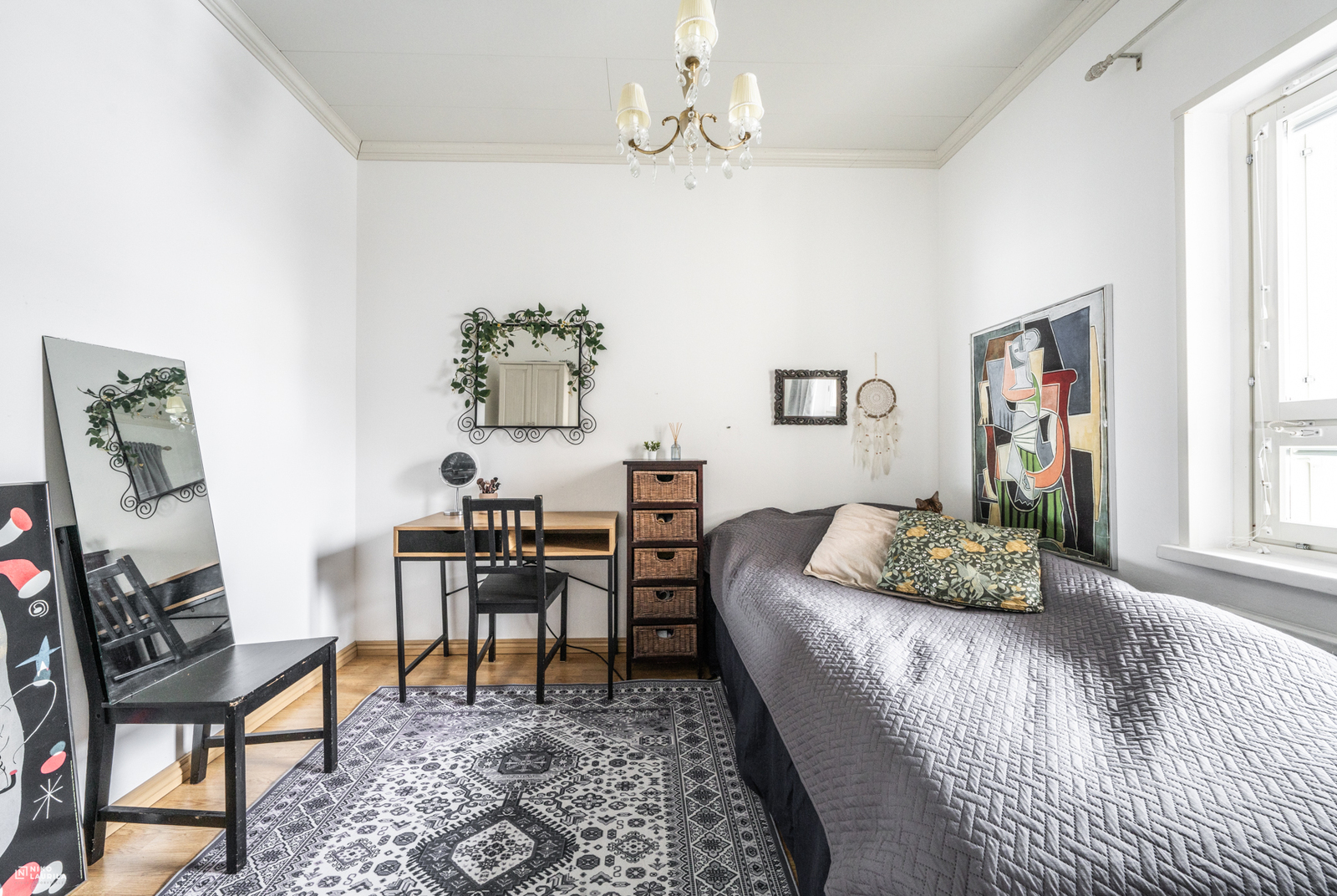 | Makuuhuoneen kuvaus | Lukumäärä: 1, seinät (maali), lattiat (laminaatti) |