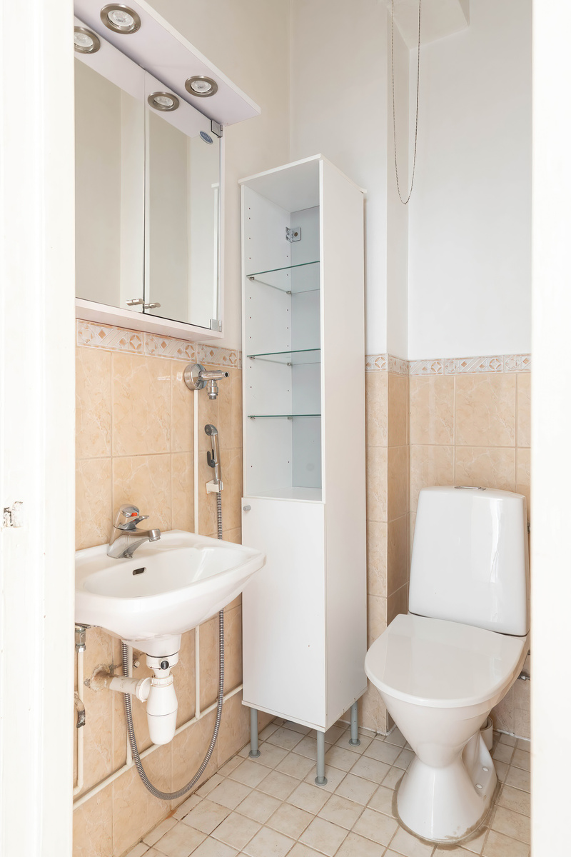 | Kylpyhuoneen kuvaus | Seinät (kaakeli), lattiat (laatta) |