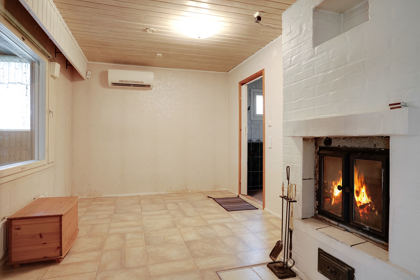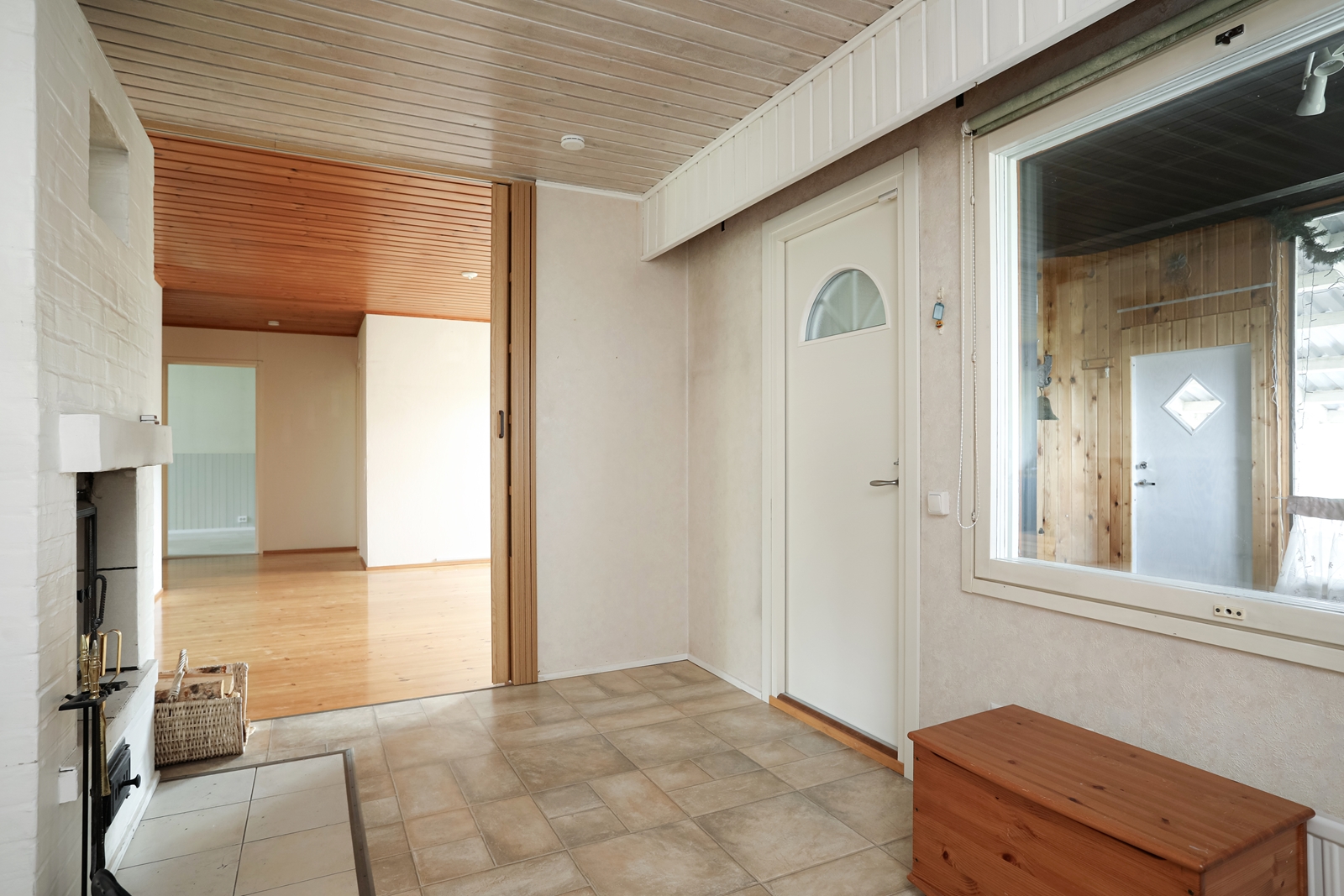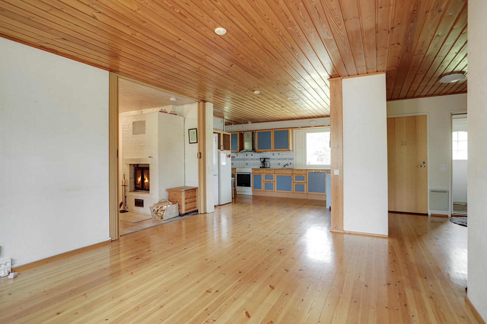 Talon sydän on olohuoneen jatkeena oleva takkahuone, jossa on lämpöä varaava takka luomassa tunnelmaa viileinä iltoina.