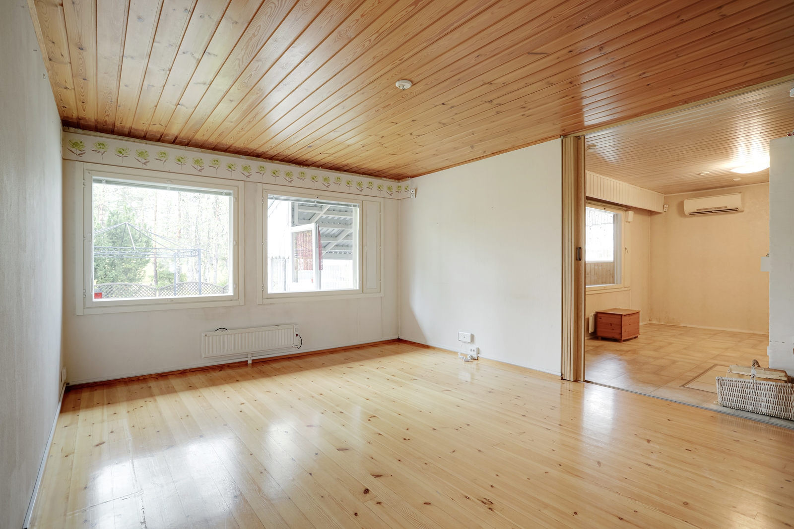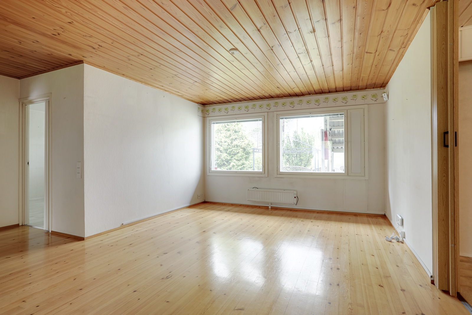 | Olohuoneen kuvaus | Seinät (tapetti), lattiat (parketti) |