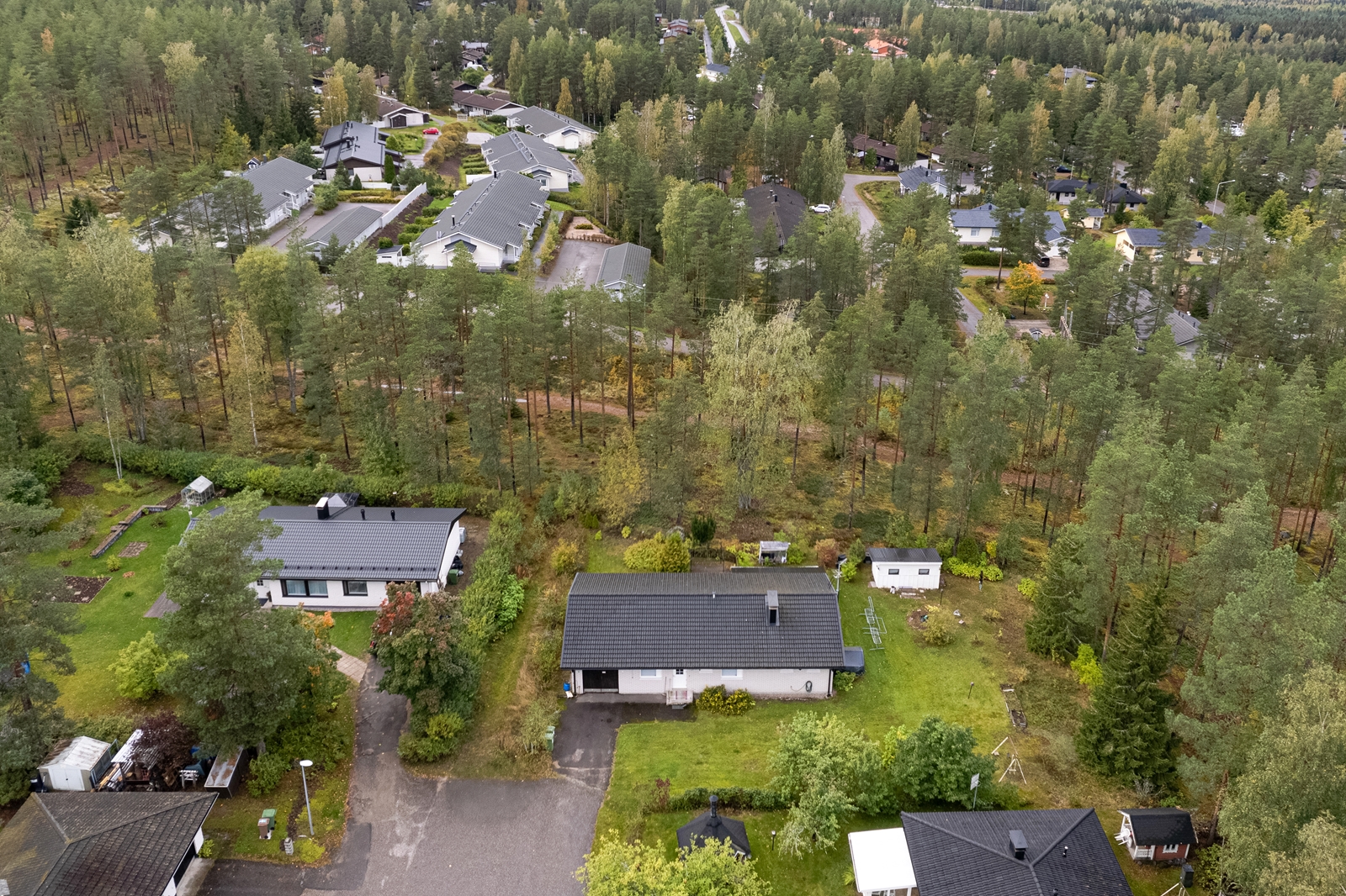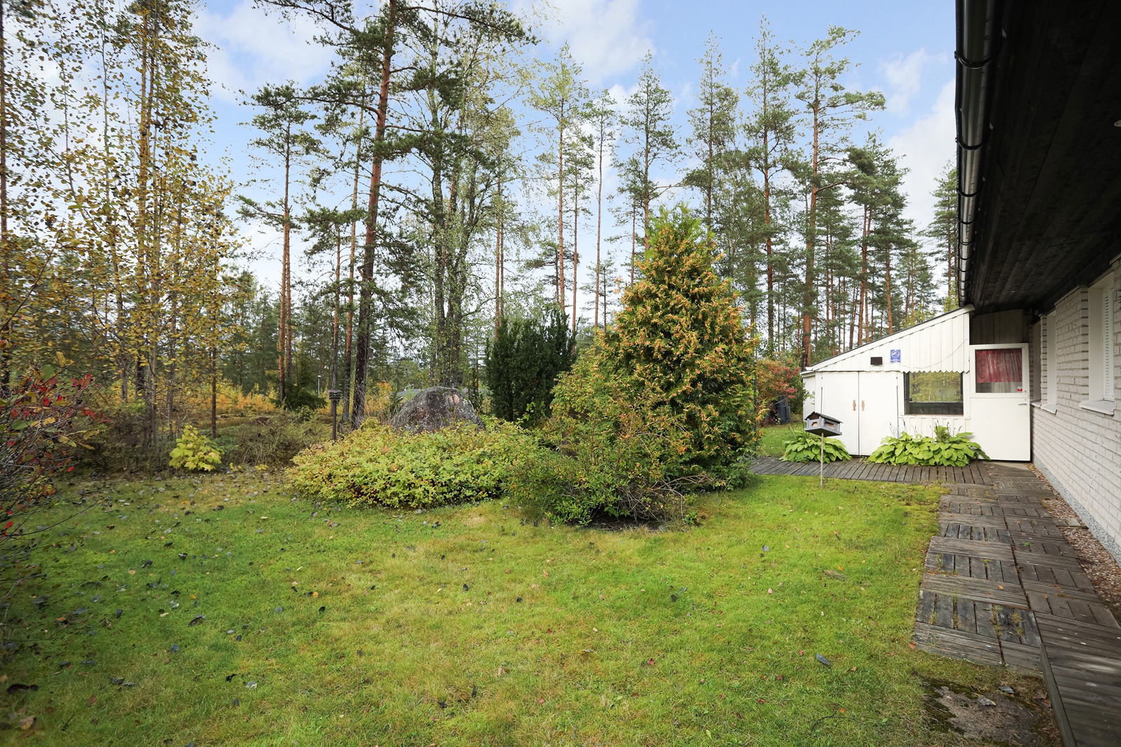 Talo on rakennettu omalle 1053 m² tontille, mikä tarjoaa runsaasti tilaa niin puutarhanhoitoon kuin vapaa-ajan viettoon. Tontti rajoittuu puistoalueeseen, vain yhdellä rajalla toiseen asuinkiinteistöön.