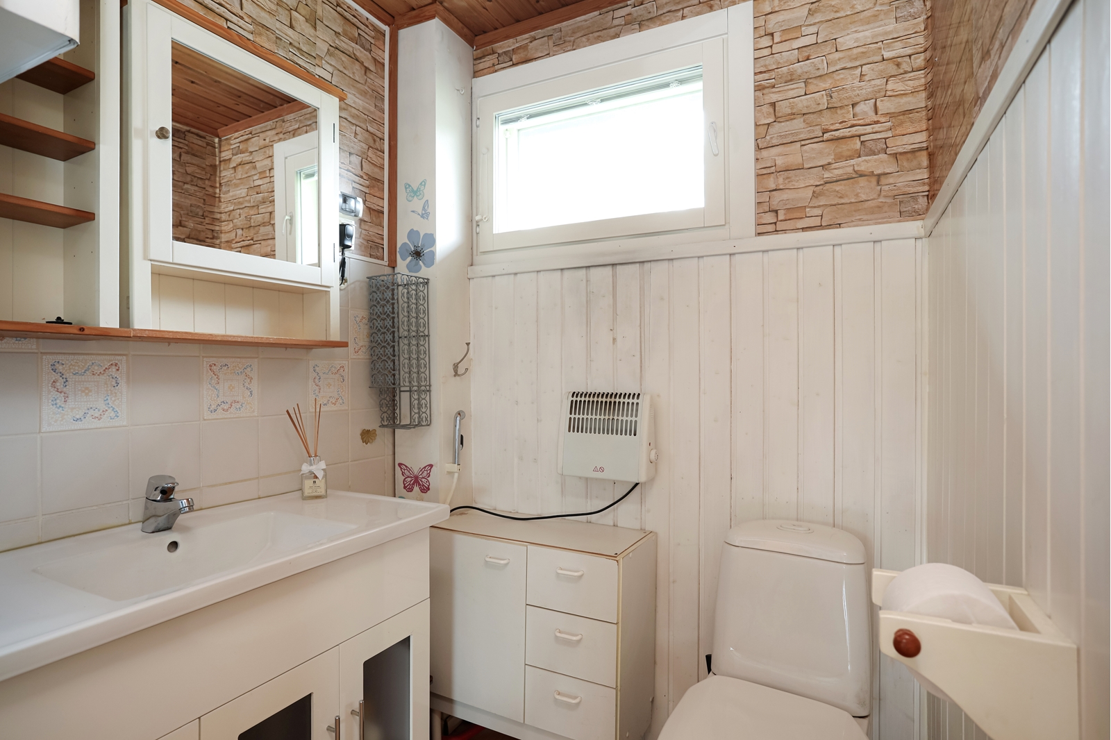 Keittiö on uusittu vuonna 2000 ja se on varustettu nykyaikaisilla kodinkoneilla. Kaksi makuuhuonetta tarjoavat mukavat puitteet lepoon ja rentoutumiseen. Kylpyhuone on peruskorjattu vuonna 1999 ja sinne on juuri asennettu uusi suihkukaappi.