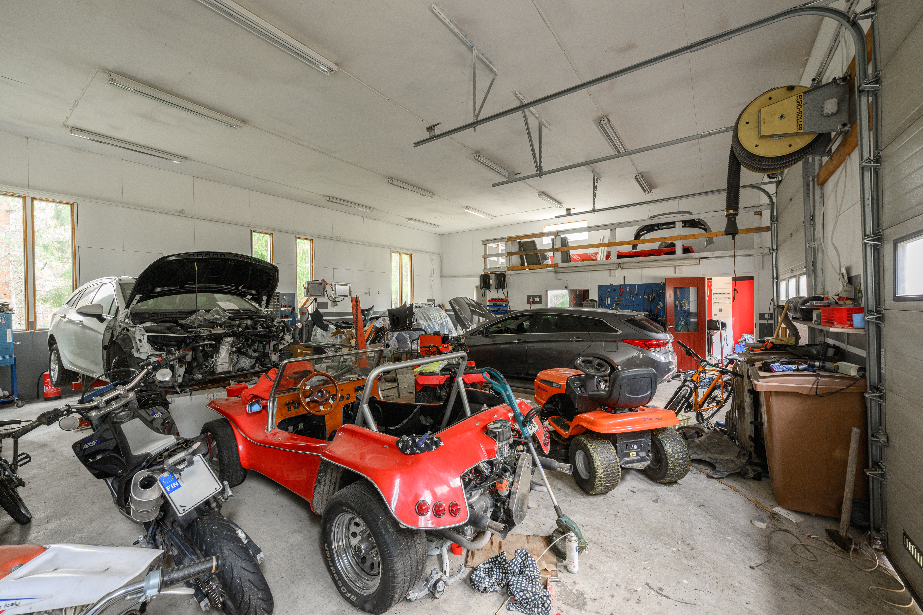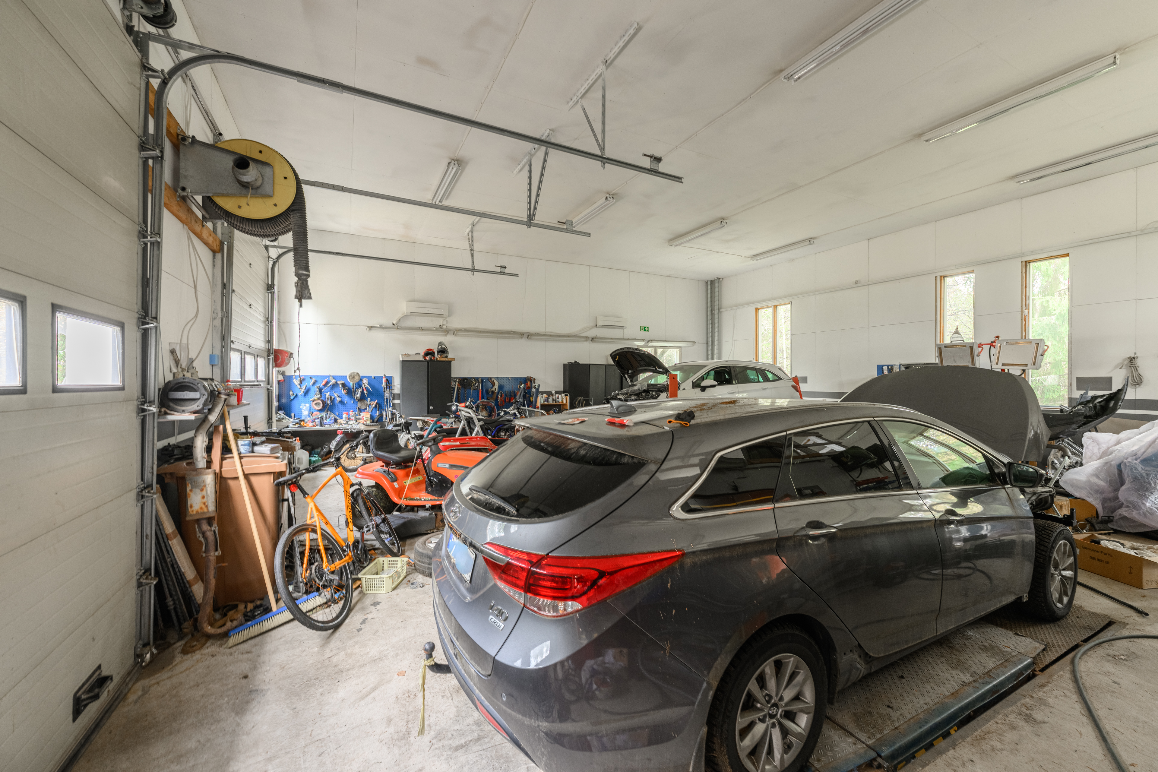 | Muut rakennukset | Autohalli rv 2002 kahdessa kerroksessa 300m2 lämmintä tilaa. Yläkerrassa vesikiertoinen lattialämmitys. 2 ilmalämpöpumppua. Yläkerrassa 2 lattiakaivoa jotka johtavat öljynerotuskaivoon. Toimistotiloissa löytyy valmiit vedot viemärille sekä vedelle. Yläkertaan on tehty tupla kipsi+kivilevyseinät eli pystyy hitsaamaan. Alakerta on ns. kylmäätilaa, mutta pysyy talvella plussalla. Alakerrasta löytyy öljykattila joka lämmittää hallin ja kiinteistön 35 kW. Öljysäiliöt ovat 1500L+1500L mutta käytös vain toinen säiliö. Ylä ja ala- kerrasta löytyy autonosturit eli sopii hyvin harrastekäyttöön. Kompressori löytyy myös ja näistä edellä mainituista voidaan neuvotella erikseen. |
