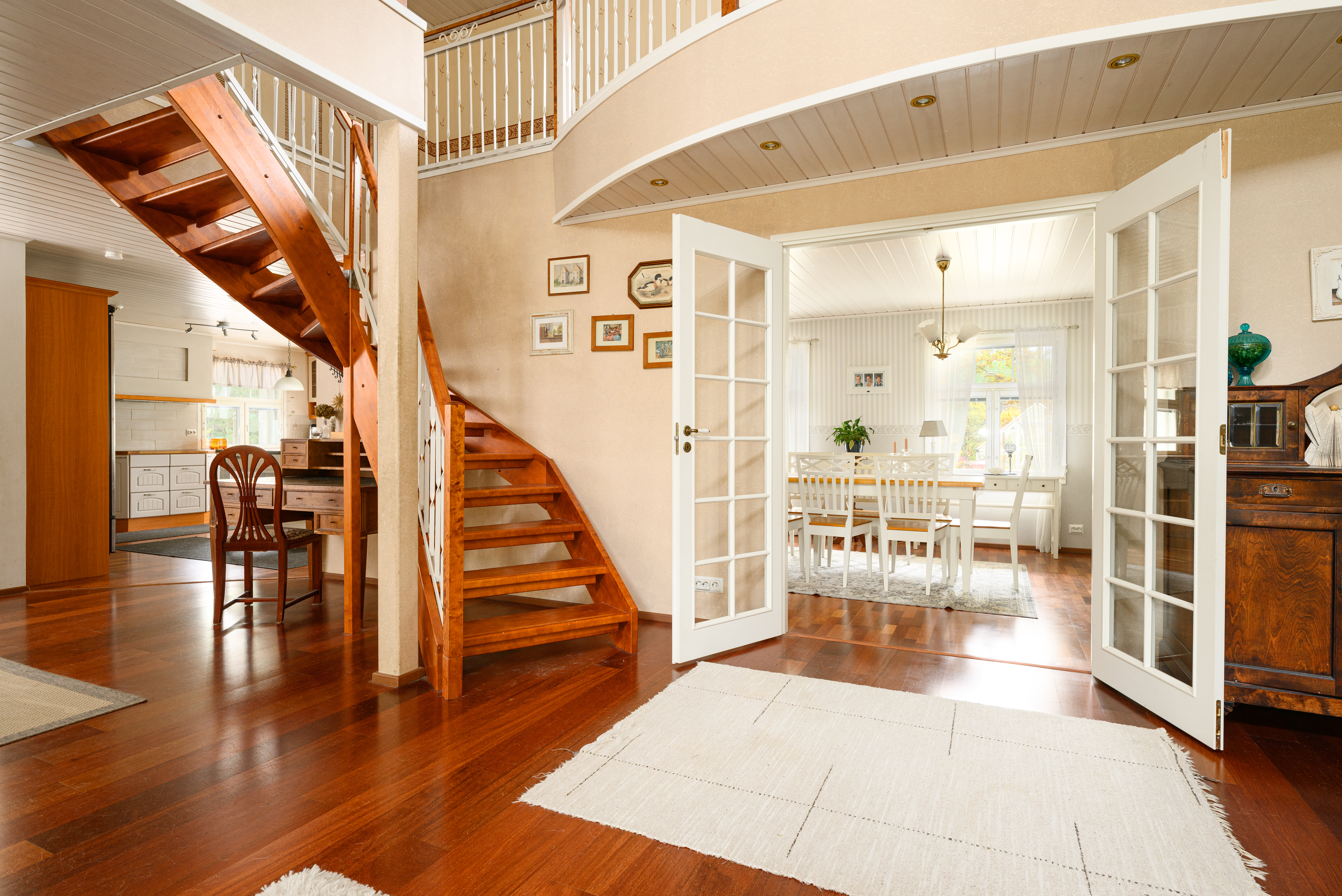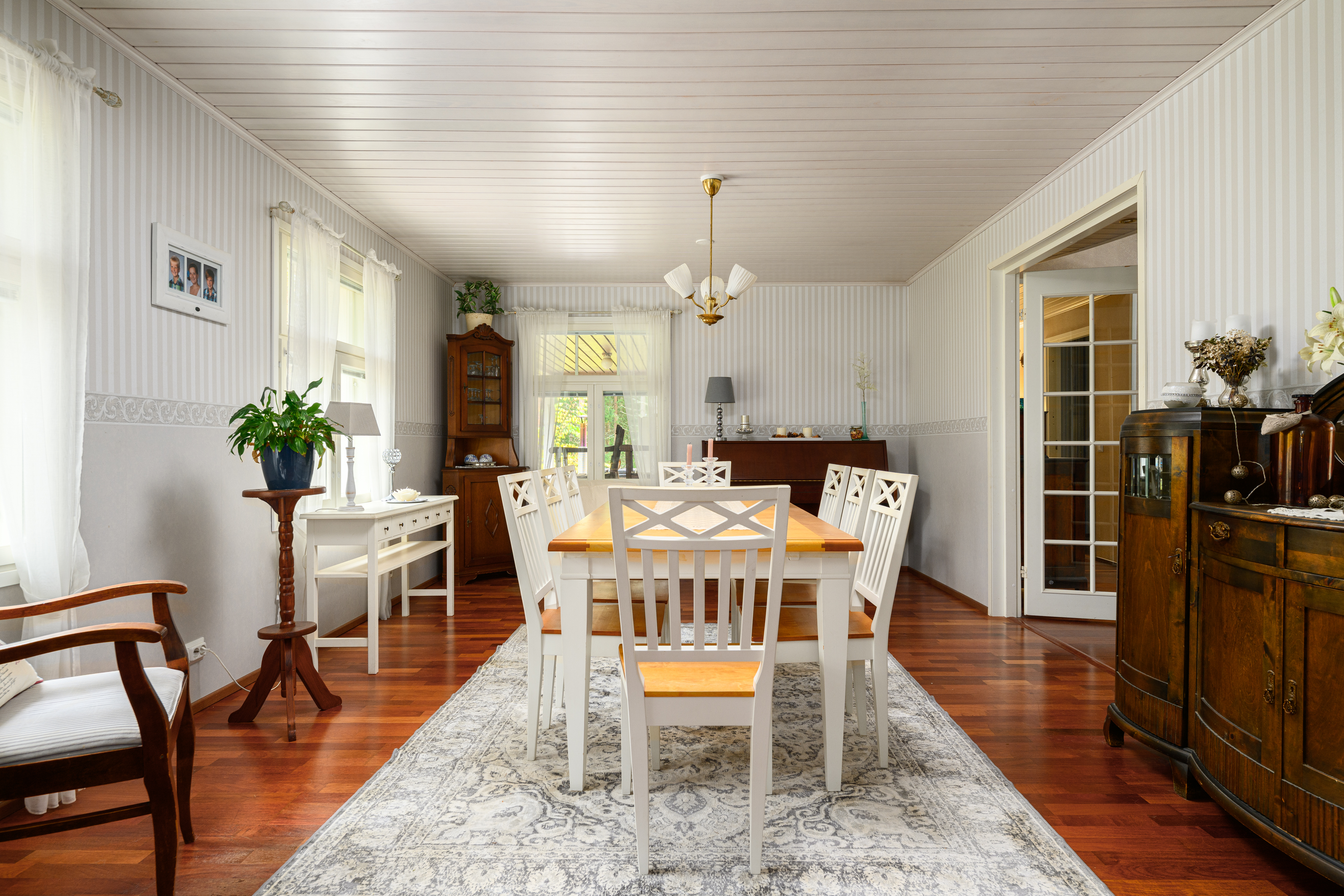 Tämä tilava ja valoisa omakotitalo Karkkilan Siikalassa tarjoaa ihanteelliset puitteet perhe-elämälle. Talossa on viisi makuuhuonetta, joten tilaa riittää isommallekin perheelle tai vieraille. Korkea huonekorkeus olohuoneessa ja suuri ikkunapinta-ala tuovat runsaasti luonnonvaloa sisään, luoden avaran ja ilmavan tunnelman.