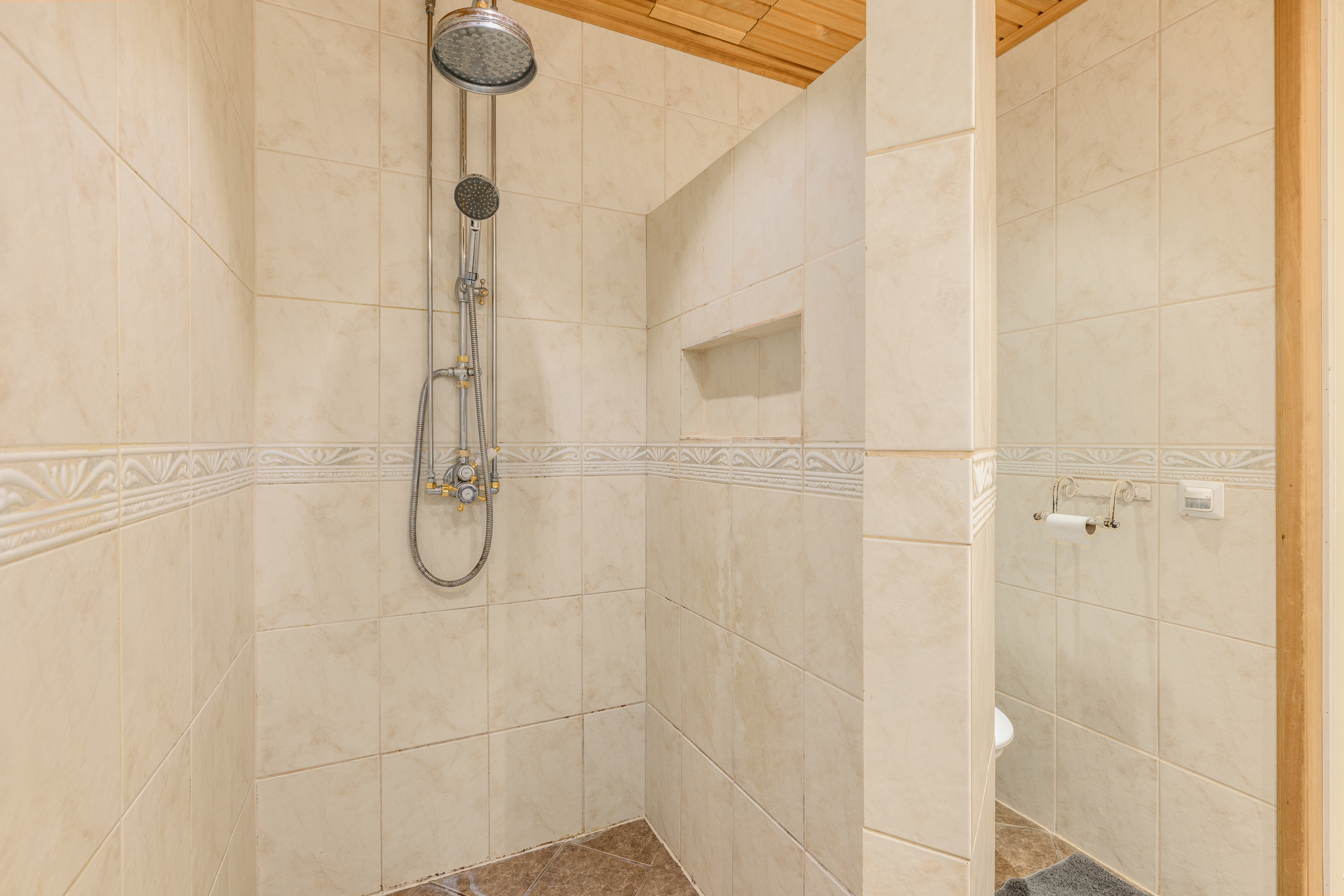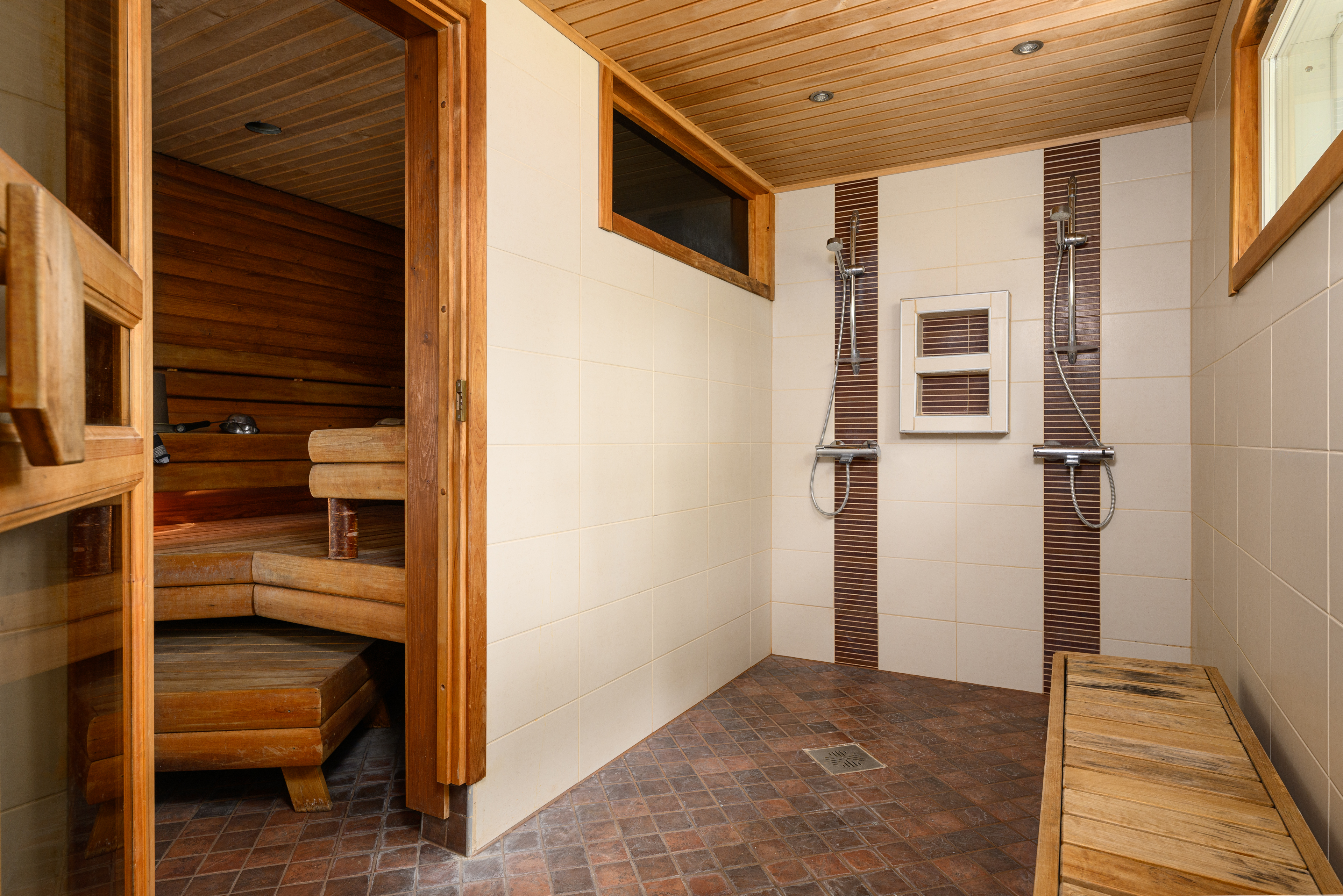 | Kylpyhuoneen kuvaus | Suihku ja lattialämmitys, seinät (kaakeli), lattiat (laatta), Talossa on kolme suihkupaikkaa ja sauna vielä erikseen. |
